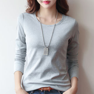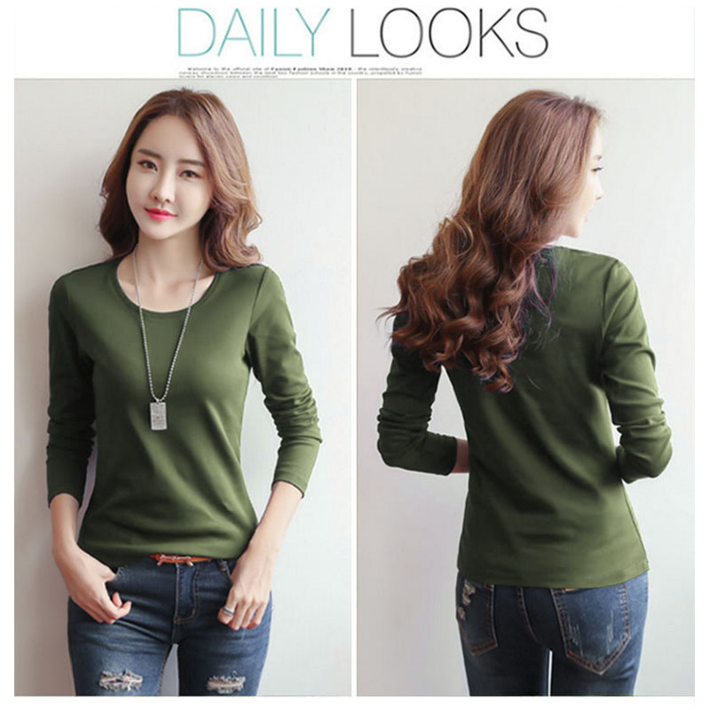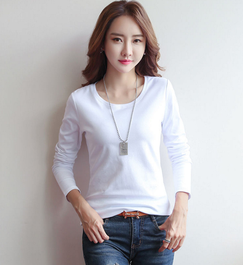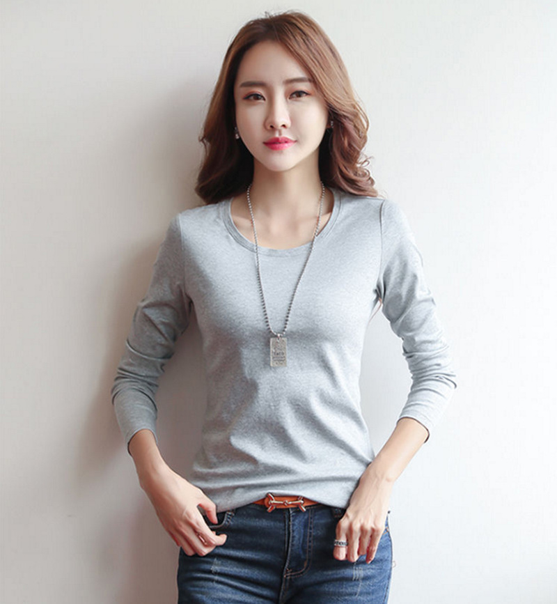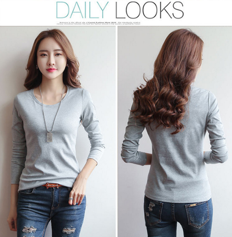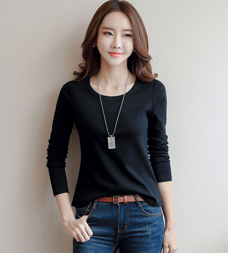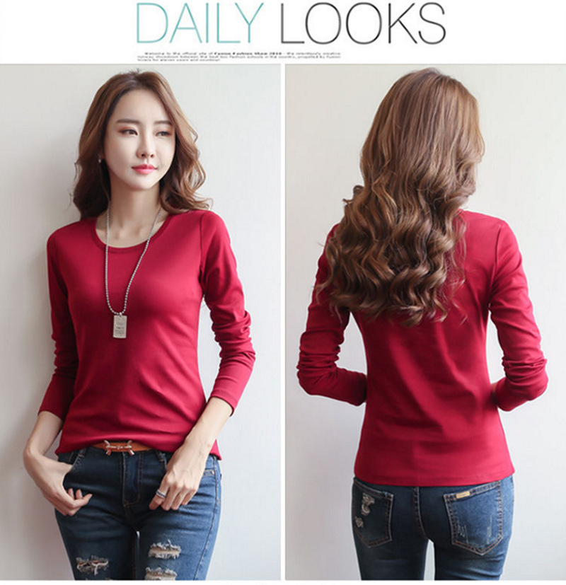 가을 2022 긴 소매 여성 티셔츠 단색 일본 슬림 얇은 풀오버베이스 셔츠 슬림 여성 도매스토어 가기