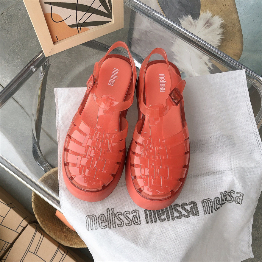 Me*sha 같은 스타일의 Baotou 로마 두꺼운 밑창 샌들 여성 복고풍 신발 캐주얼 젤리 신발 미끄럼 방지 해변 여성 신발