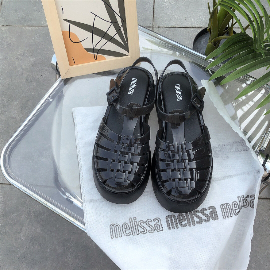 Me*sha 같은 스타일의 Baotou 로마 두꺼운 밑창 샌들 여성 복고풍 신발 캐주얼 젤리 신발 미끄럼 방지 해변 여성 신발스토어 가기