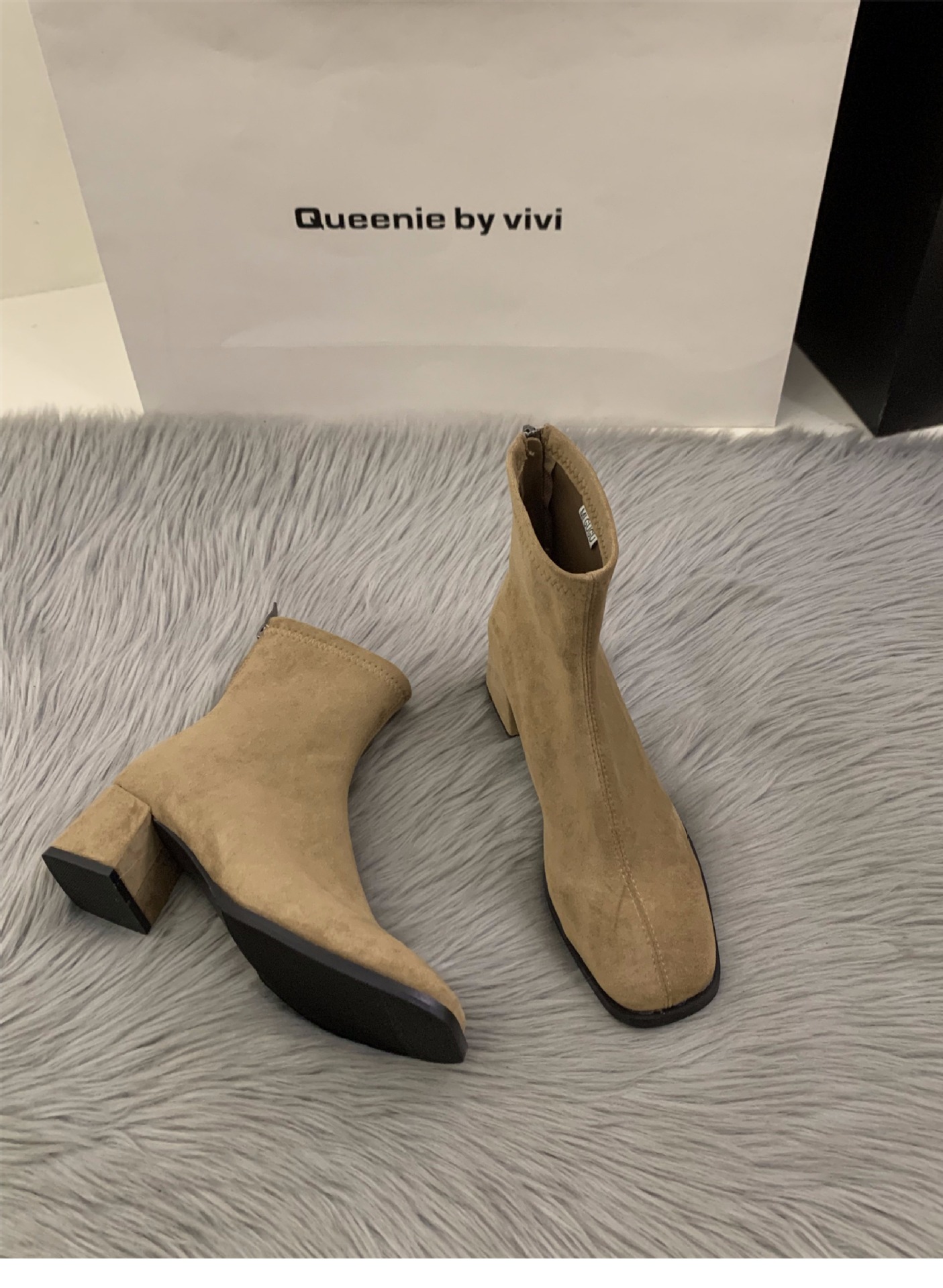 하이힐 스퀘어 발가락 슬림 짧은 부츠 여성 신발 2024 가을, 겨울 한국 스타일 작은 발목 부츠 마틴 부츠스토어 가기