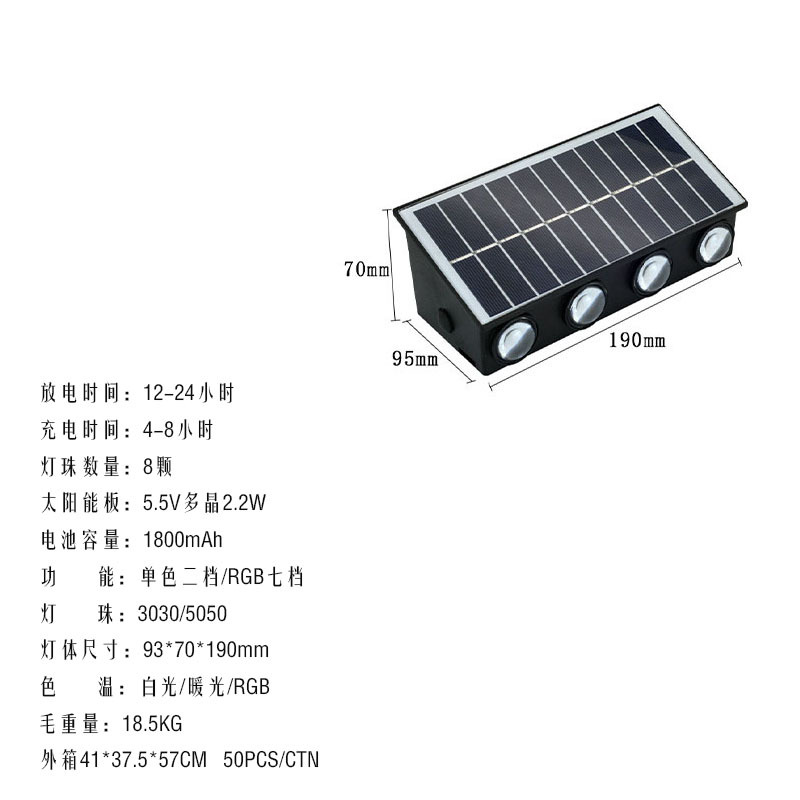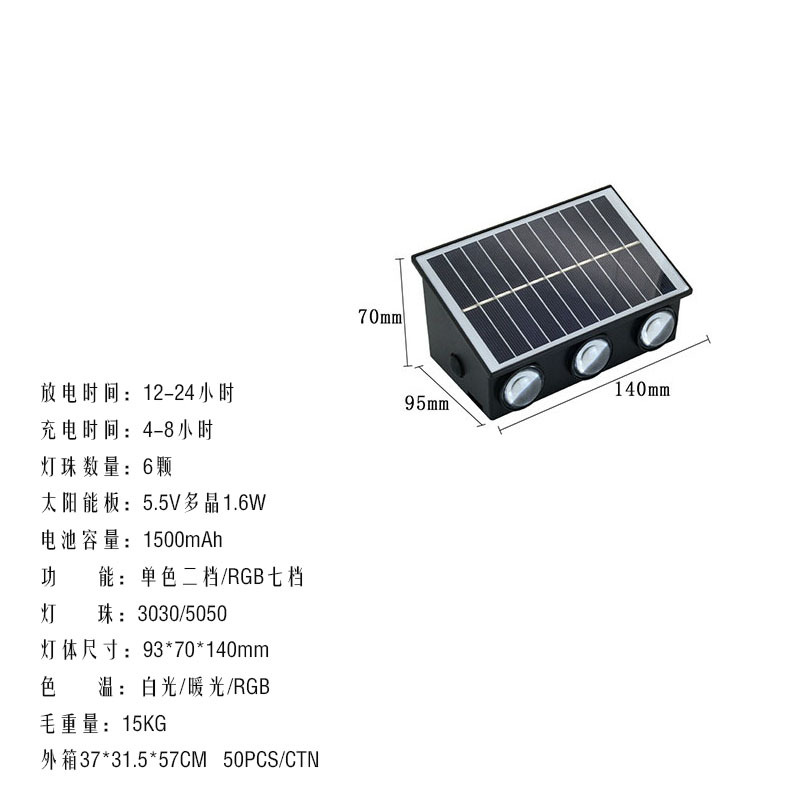 야외 태양 벽 램프 위아래로 빛나는 벽 세탁기 야외 통로 조명 가로등 정원 램프 벽 램프