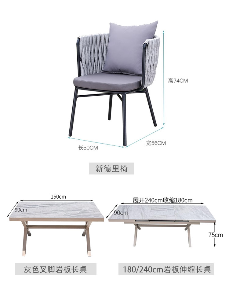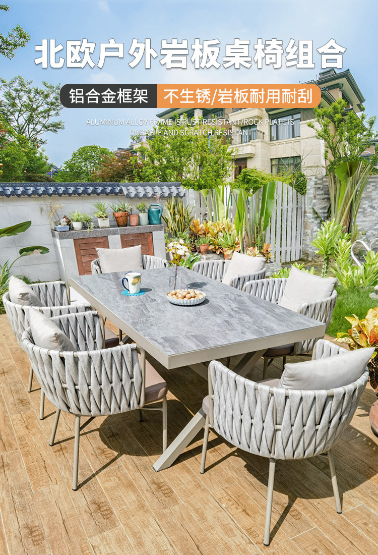 야외 테이블과 의자 바위 보드 안뜰 야외 발코니 야외 레저 등나무 의자 알루미늄 합금 빌라 정원 테이블 조합스토어 가기