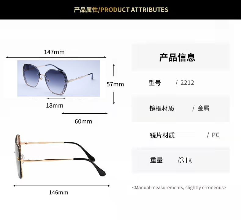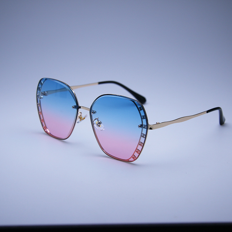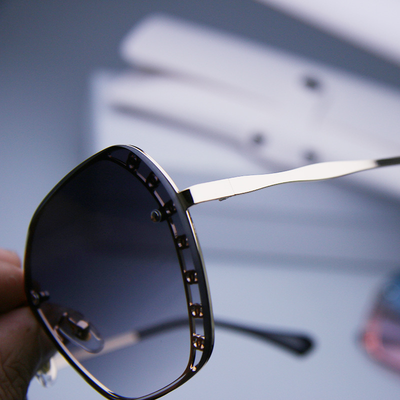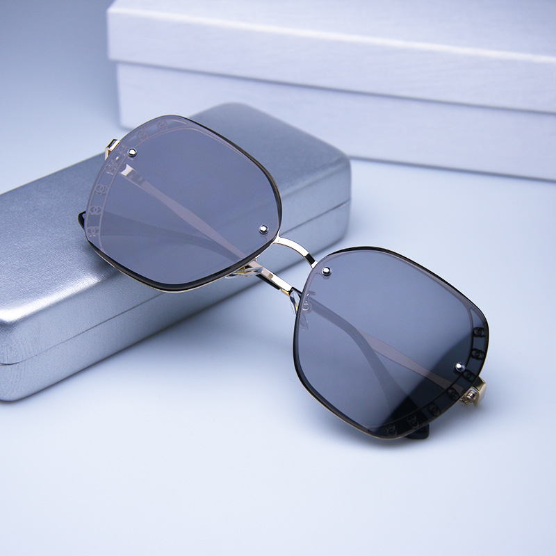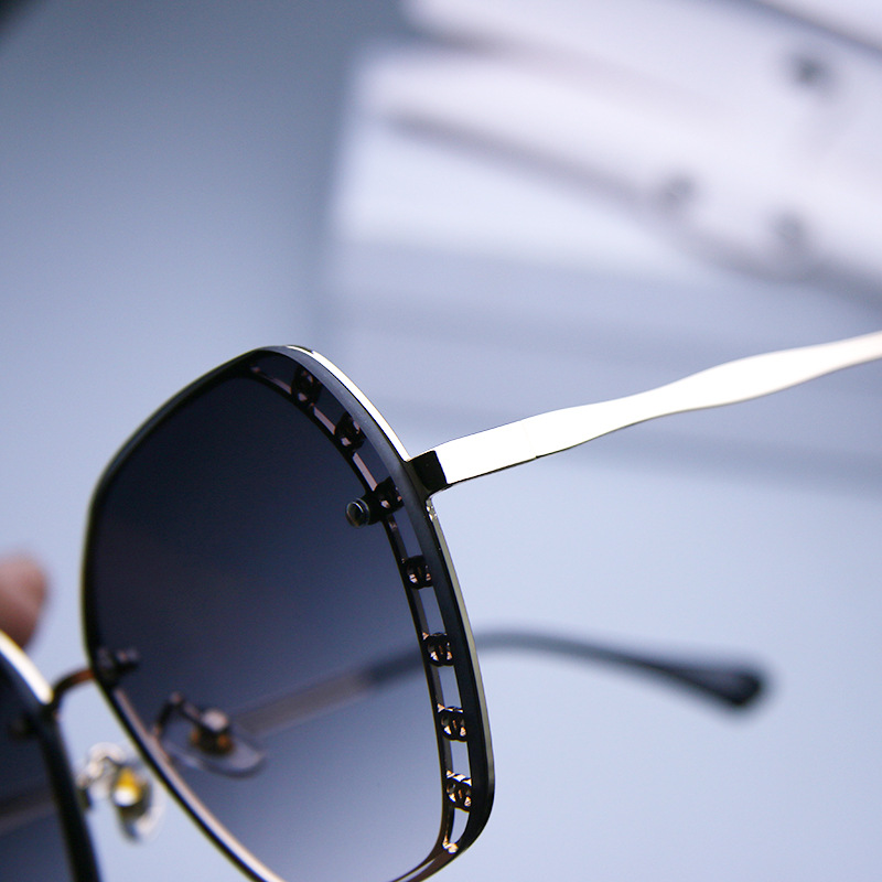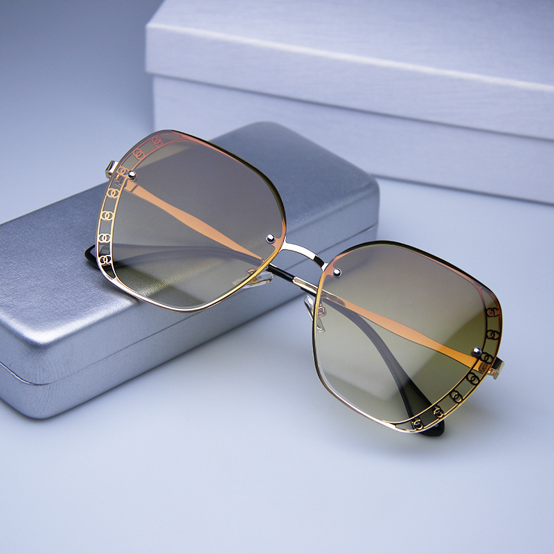 2023 신형 선글라스 유럽 및 미국 트렌드 안경 거리 촬영 무테 선글라스 여성용 메탈 고화질 선글라스