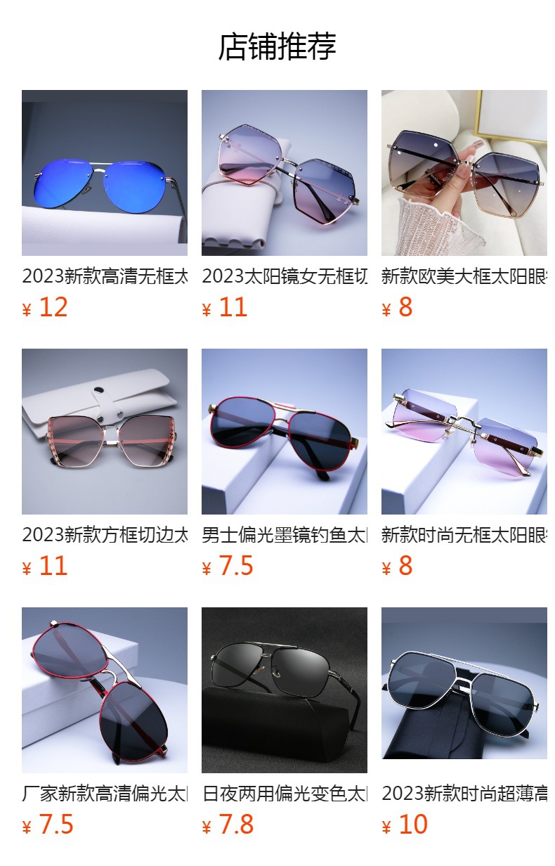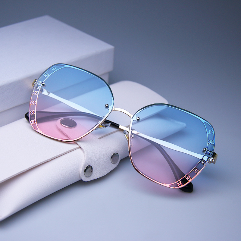 2023 신형 선글라스 유럽 및 미국 트렌드 안경 거리 촬영 무테 선글라스 여성용 메탈 고화질 선글라스스토어 가기
