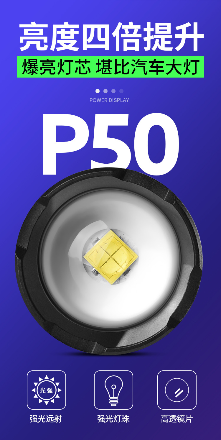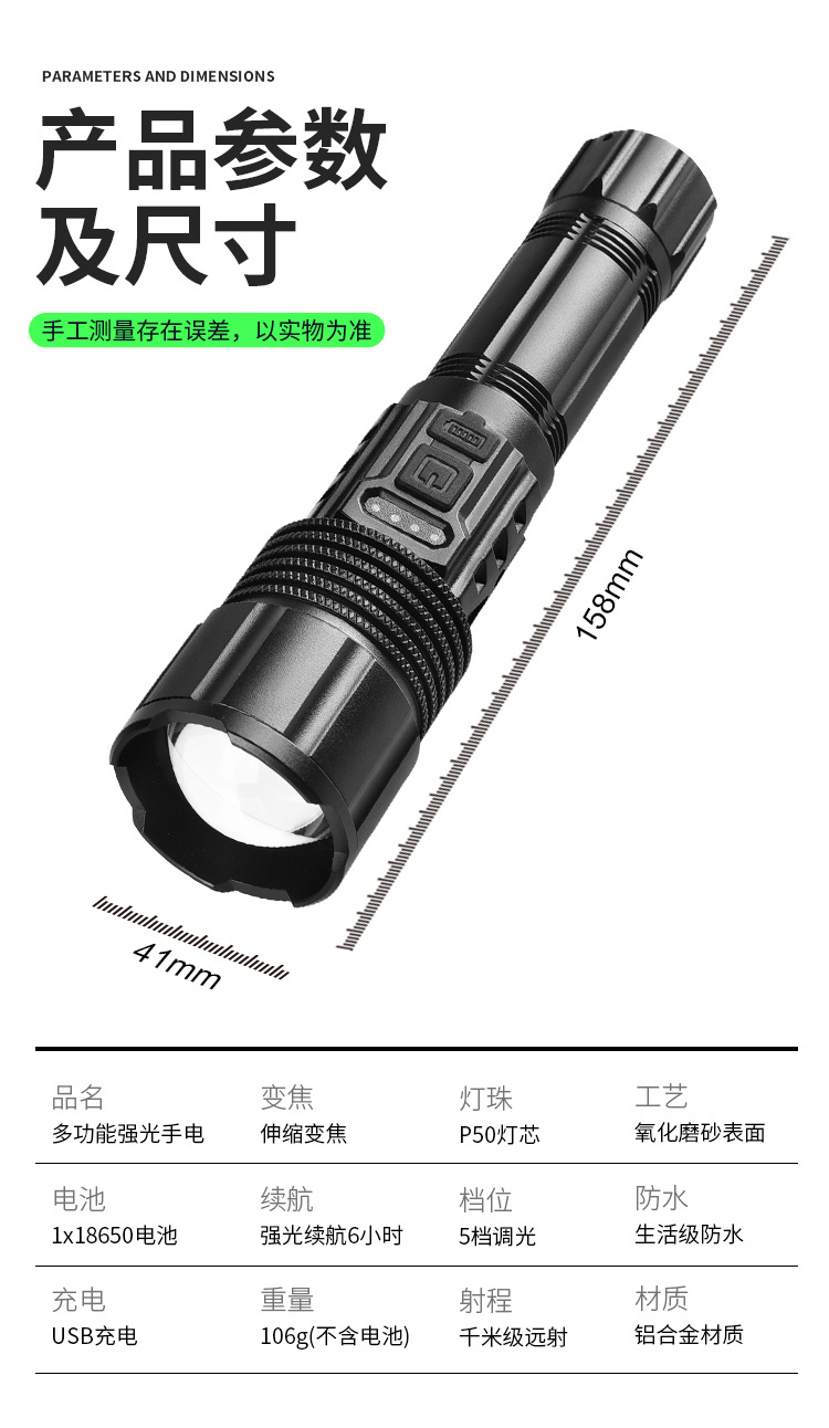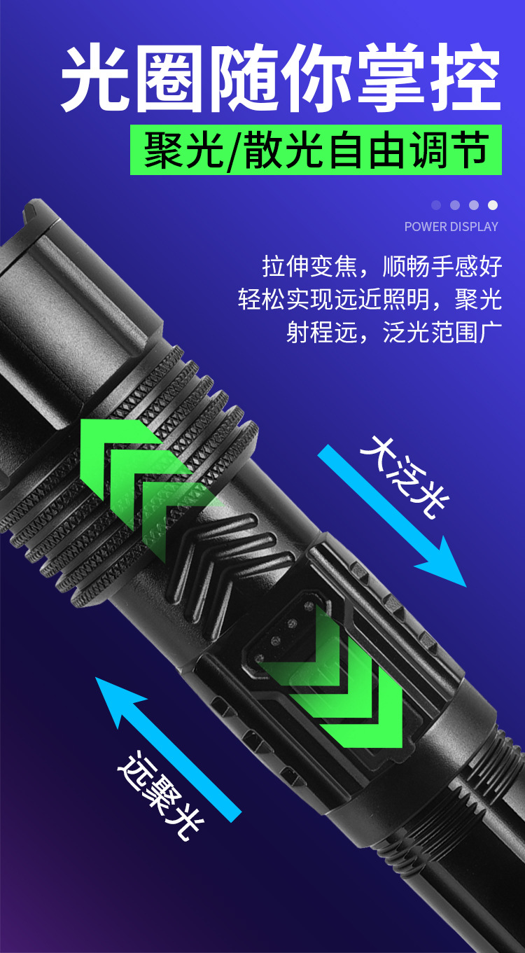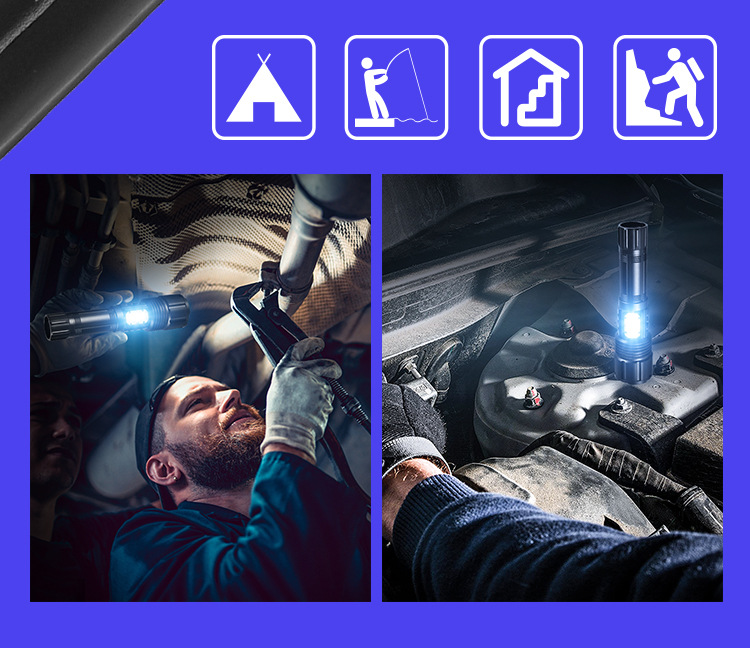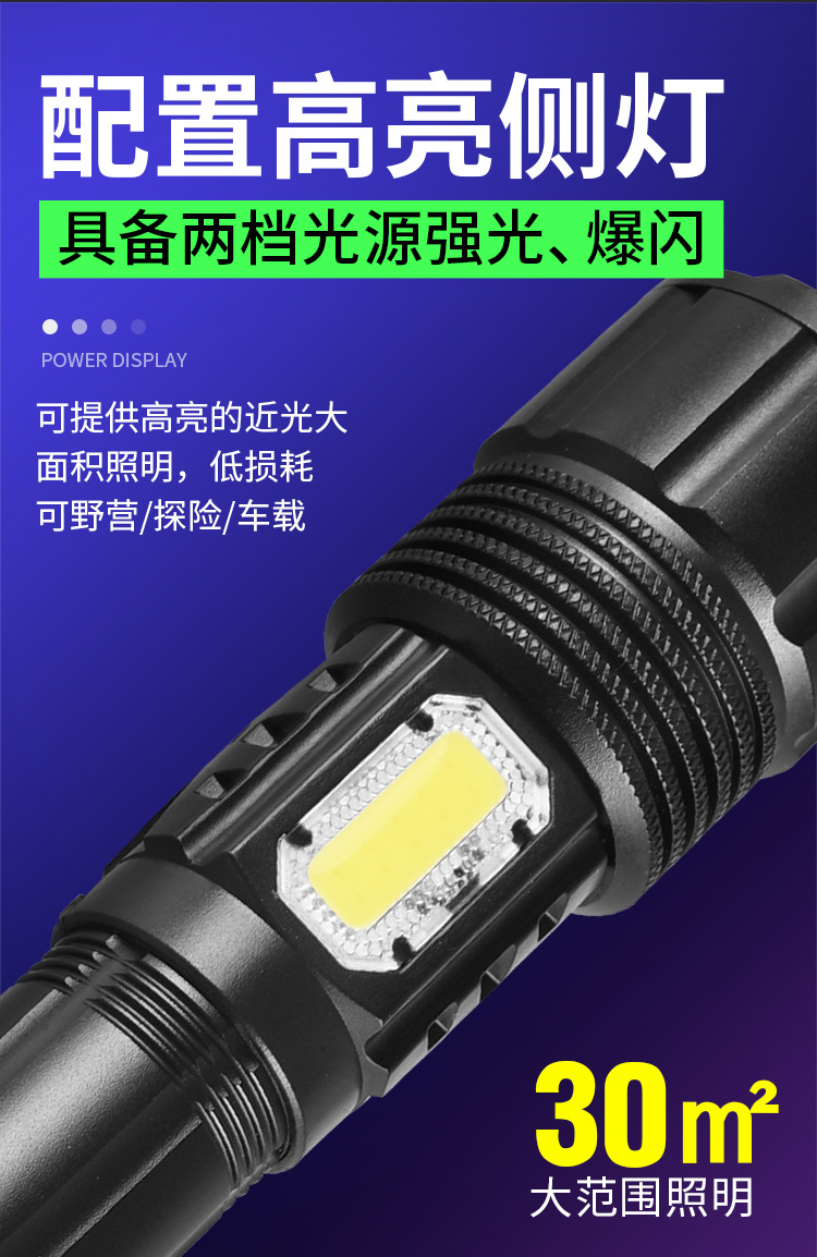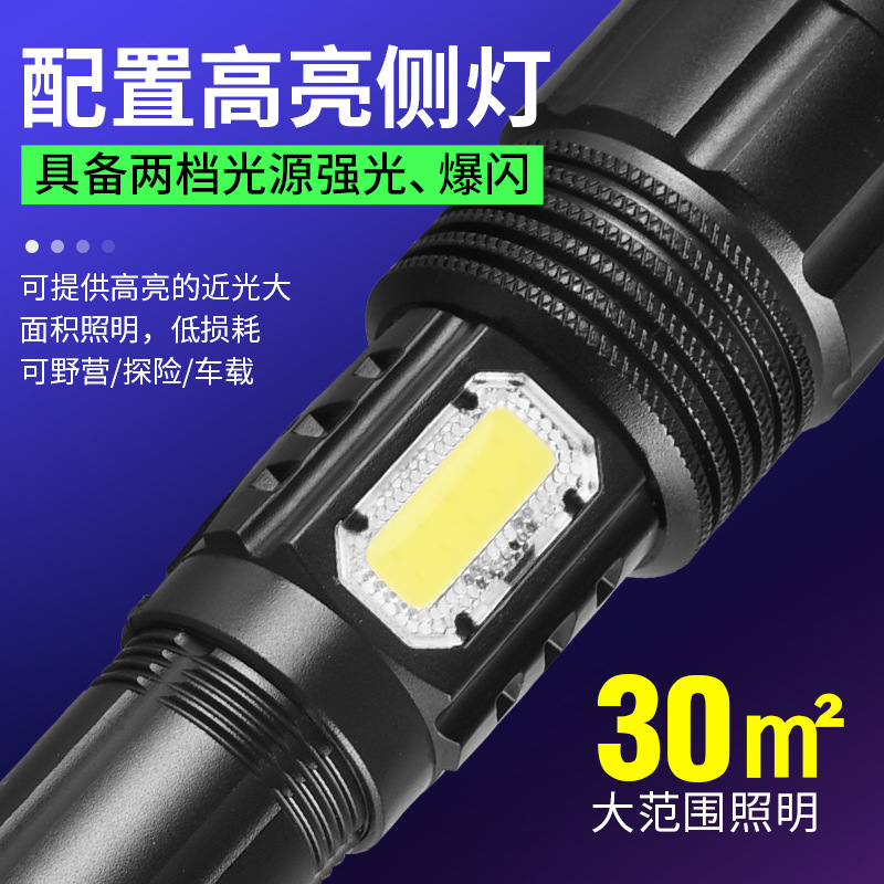 다기능 휴대용 손전등 강한 충전식 슈퍼 밝은 야외 작업 빛 작은 휴대용 장거리 줌 조명스토어 가기