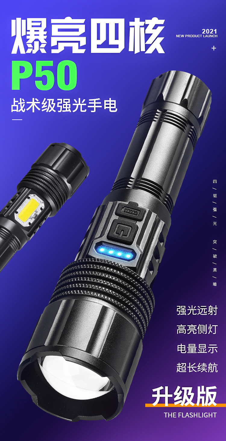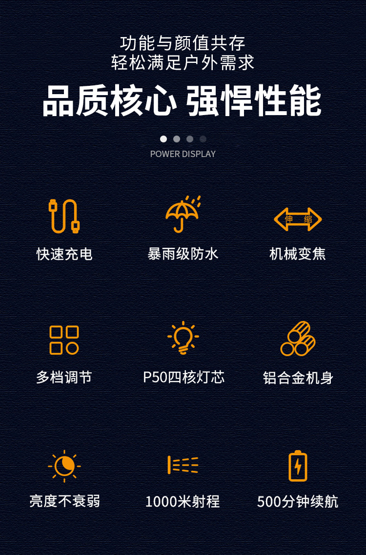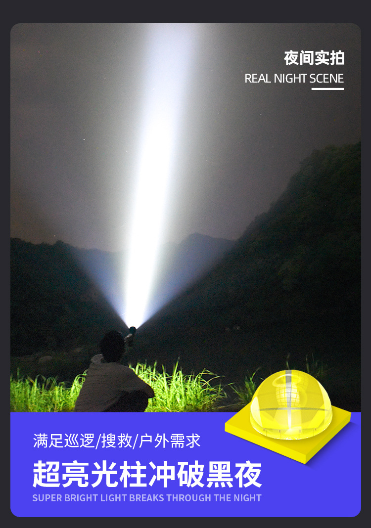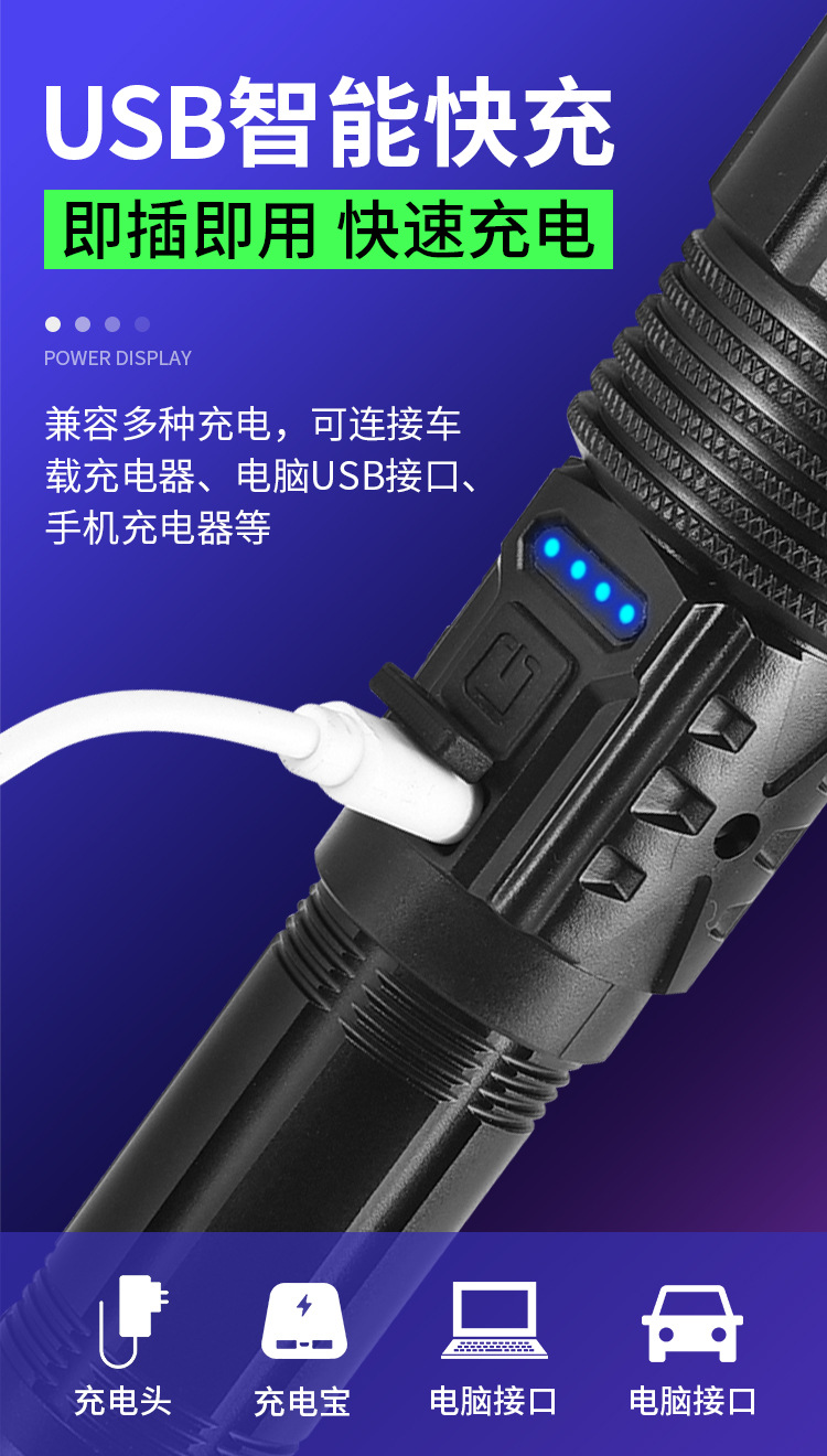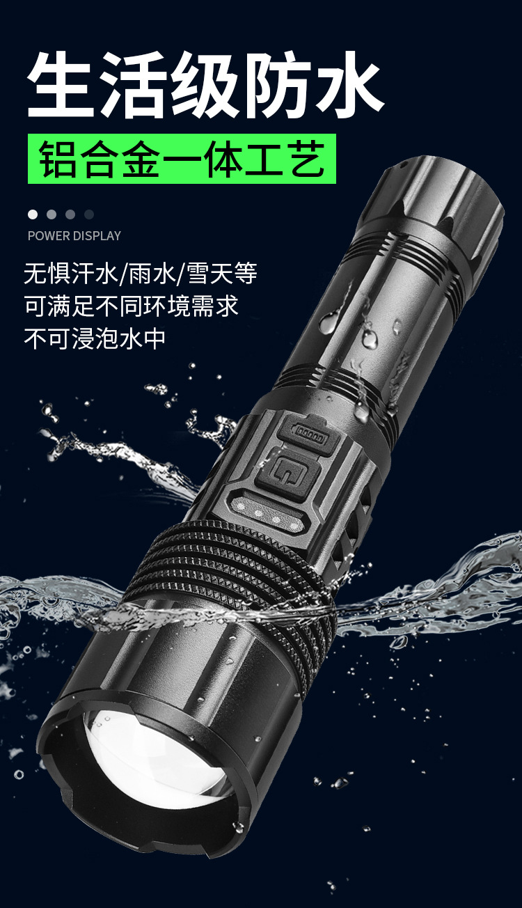 다기능 휴대용 손전등 강한 충전식 슈퍼 밝은 야외 작업 빛 작은 휴대용 장거리 줌 조명스토어 가기
