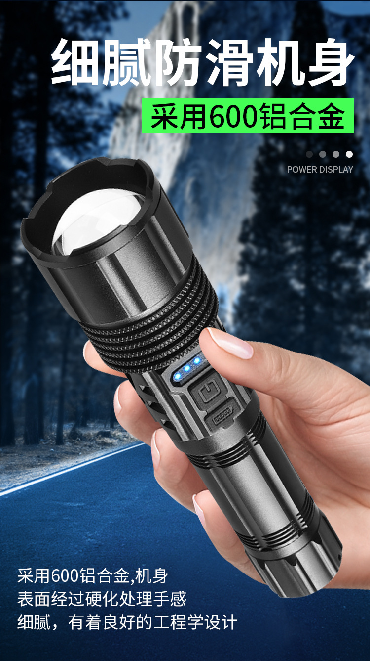 다기능 휴대용 손전등 강한 충전식 슈퍼 밝은 야외 작업 빛 작은 휴대용 장거리 줌 조명
