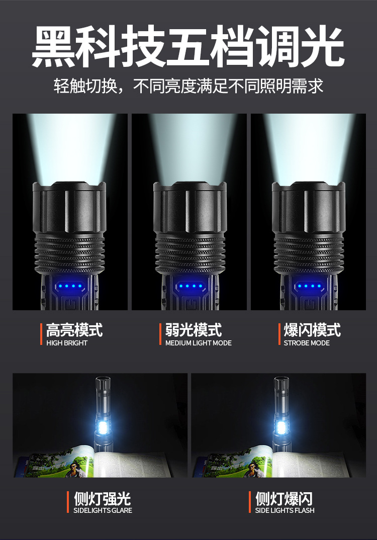• 사이드 라이트가있는 S6 손전등 (배터리 포함되지 않음)