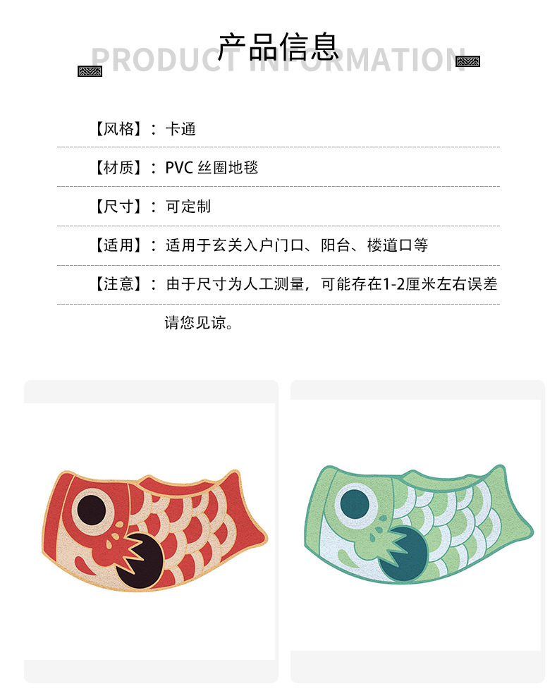 일본식 잉어 깃발 입구 문 문지르는 흙 발 매트 입구 먼지 방지 빨 바닥 매트 pvc 테일링 실크 링 바닥 매트스토어 가기