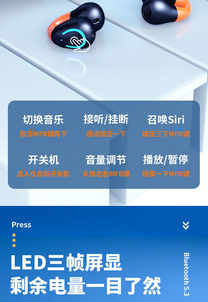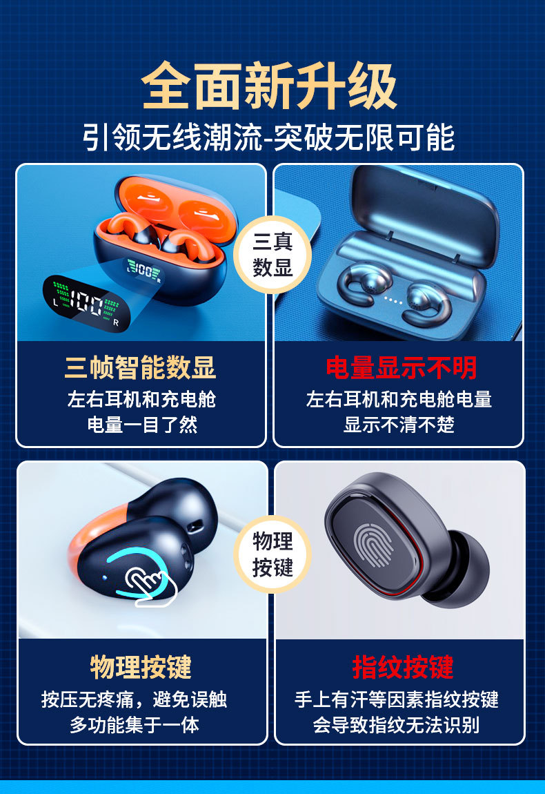 개방형 TWS 비 뼈 전도를 실행하기위한 새로운 블루투스 헤드셋 클립 온 이어 무선 비 귀 스포츠 헤드셋