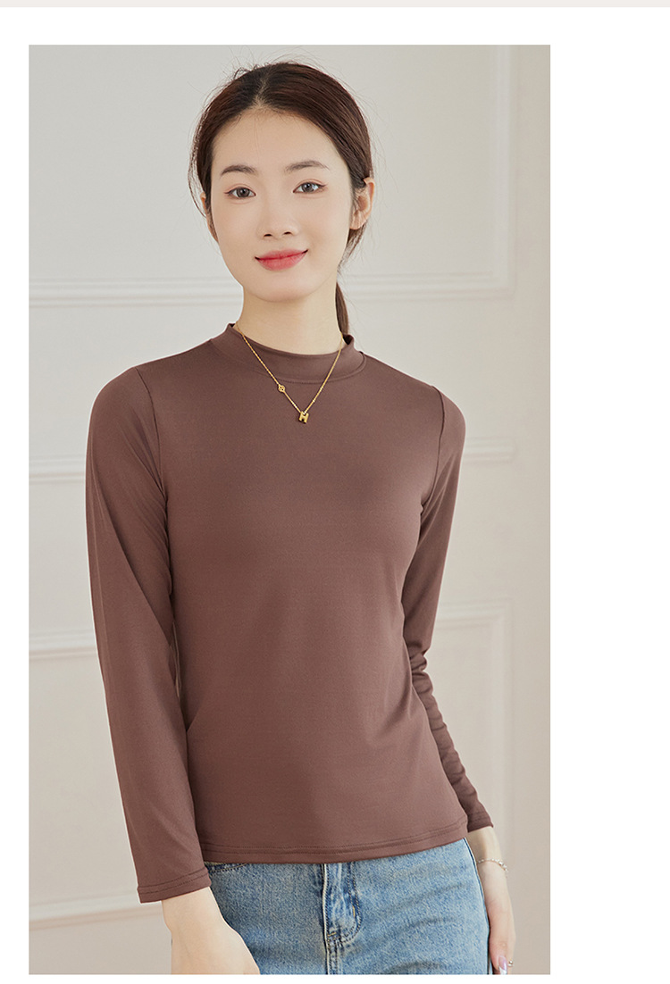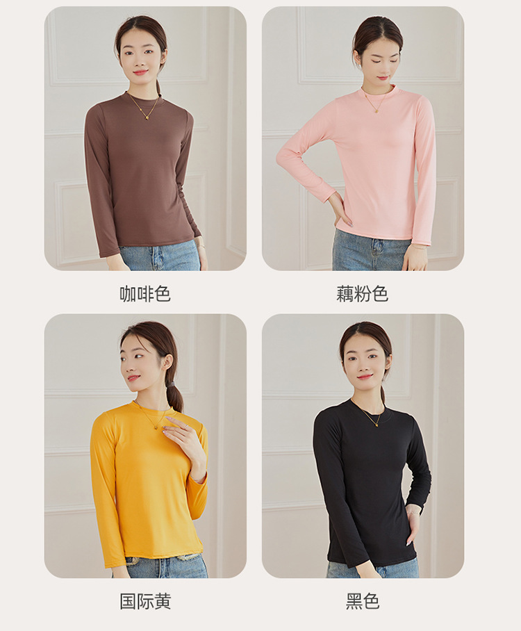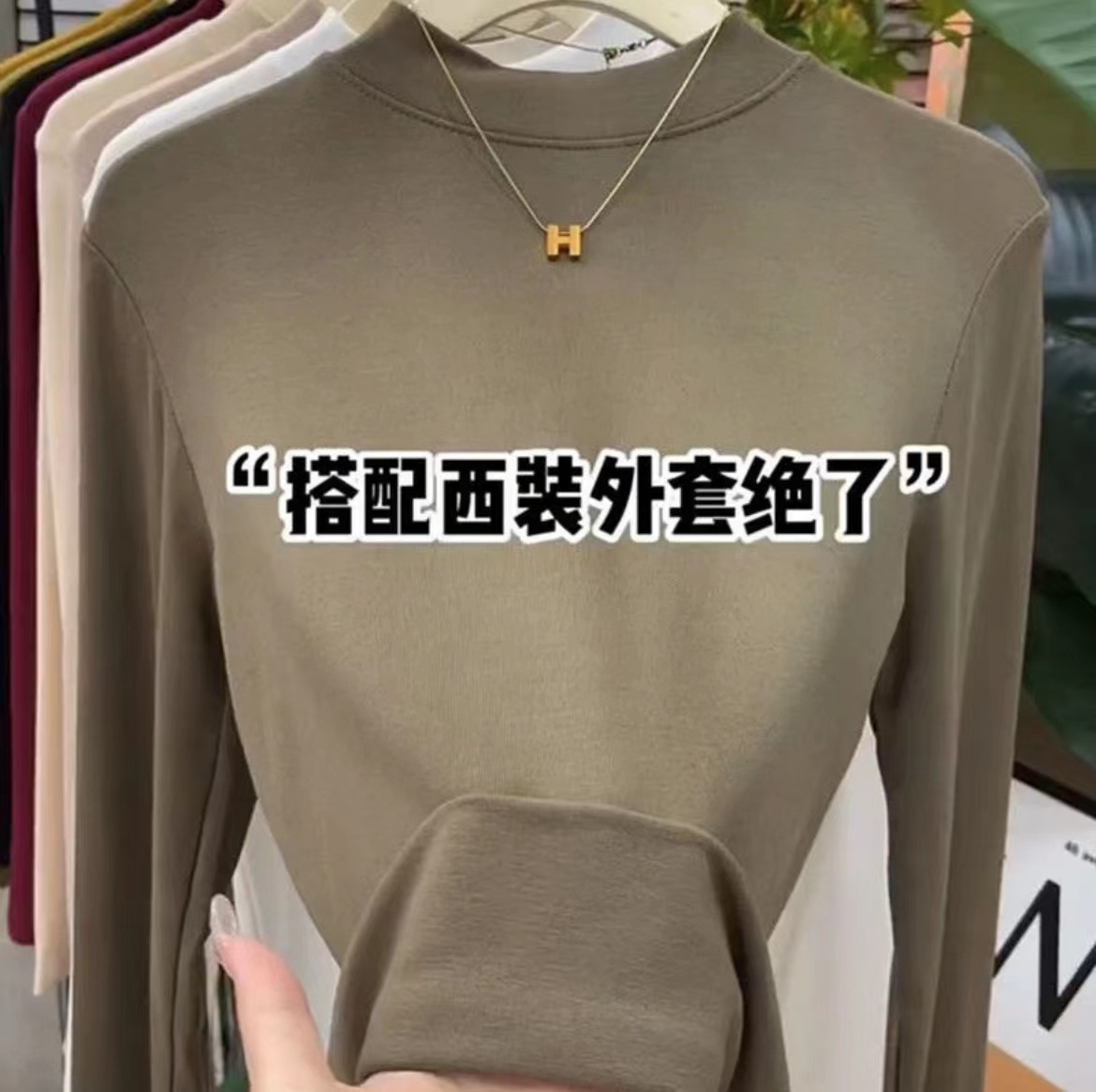 2024 가을과 겨울 인기있는 니트 긴 소매 양면 마이크로 벨벳 여성 서양식 최고 단색 슬리밍 내부의 새로운 바닥 셔츠스토어 가기