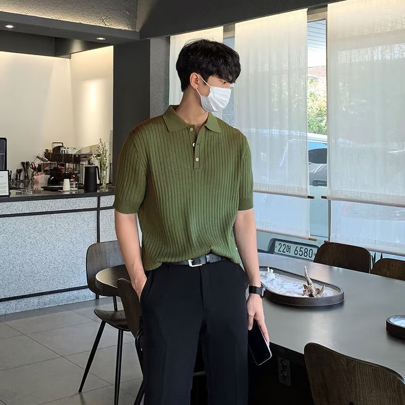 [쇼핑 폭발] TH 크로스보더 남성 라펠 반팔 폴로 셔츠 여름 슬림 통기성 남성 상의스토어 가기