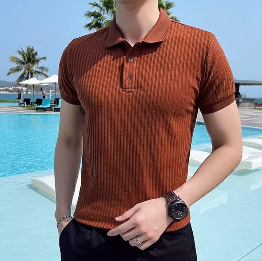 [쇼핑 폭발] TH 크로스보더 남성 라펠 반팔 폴로 셔츠 여름 슬림 통기성 남성 상의
