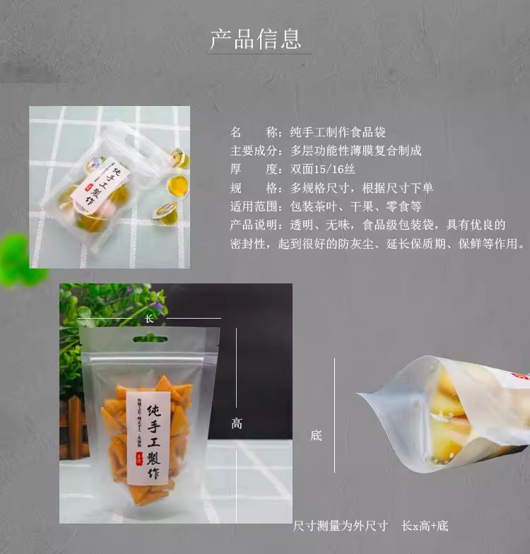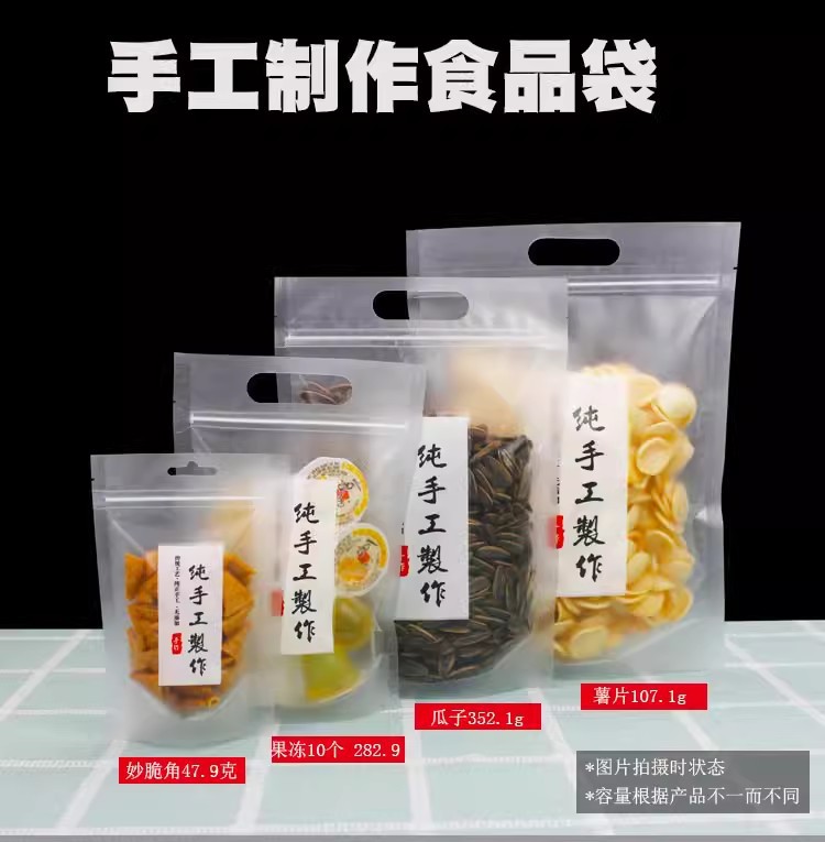수제 포장 백 감자 칩 자체 밀봉 백 땅콩 밀봉 백 비스킷 제로 식품 가방 투명 비닐 봉투스토어 가기