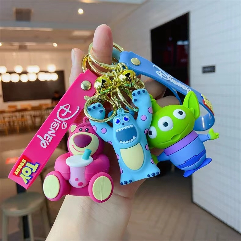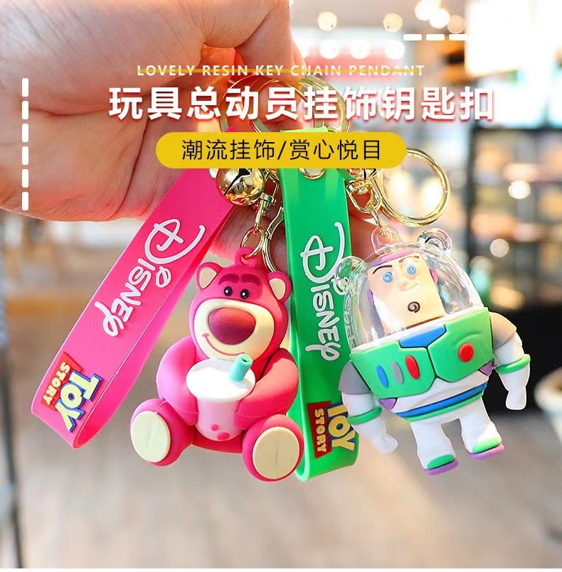 토이 스토리 젤 드롭 키 체인 Buass 라이트 년 딸기 곰 학교 가방 자동차 키 체인 펜던트 작은 상품 도매