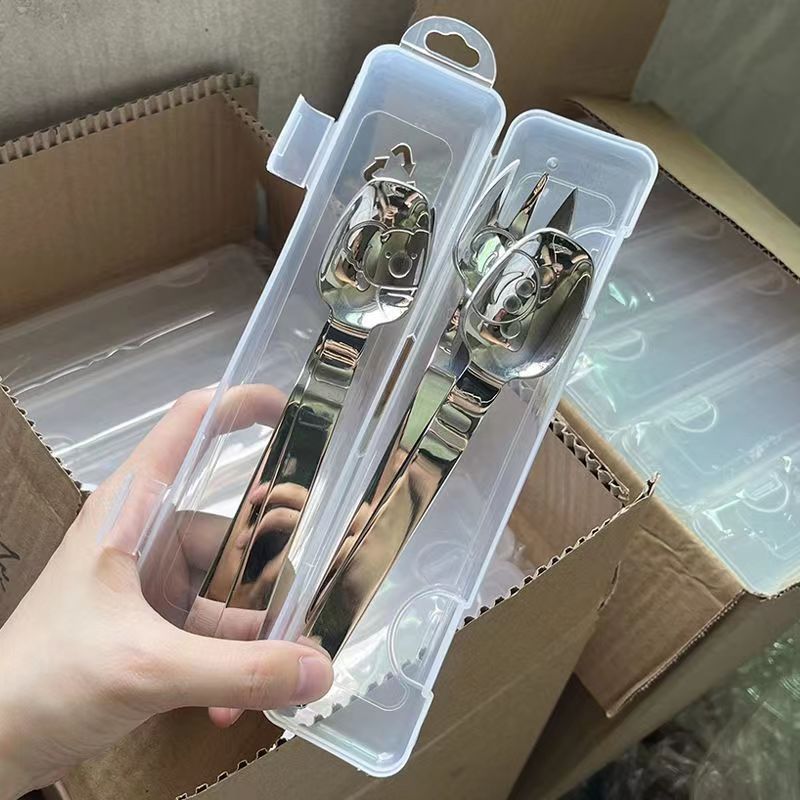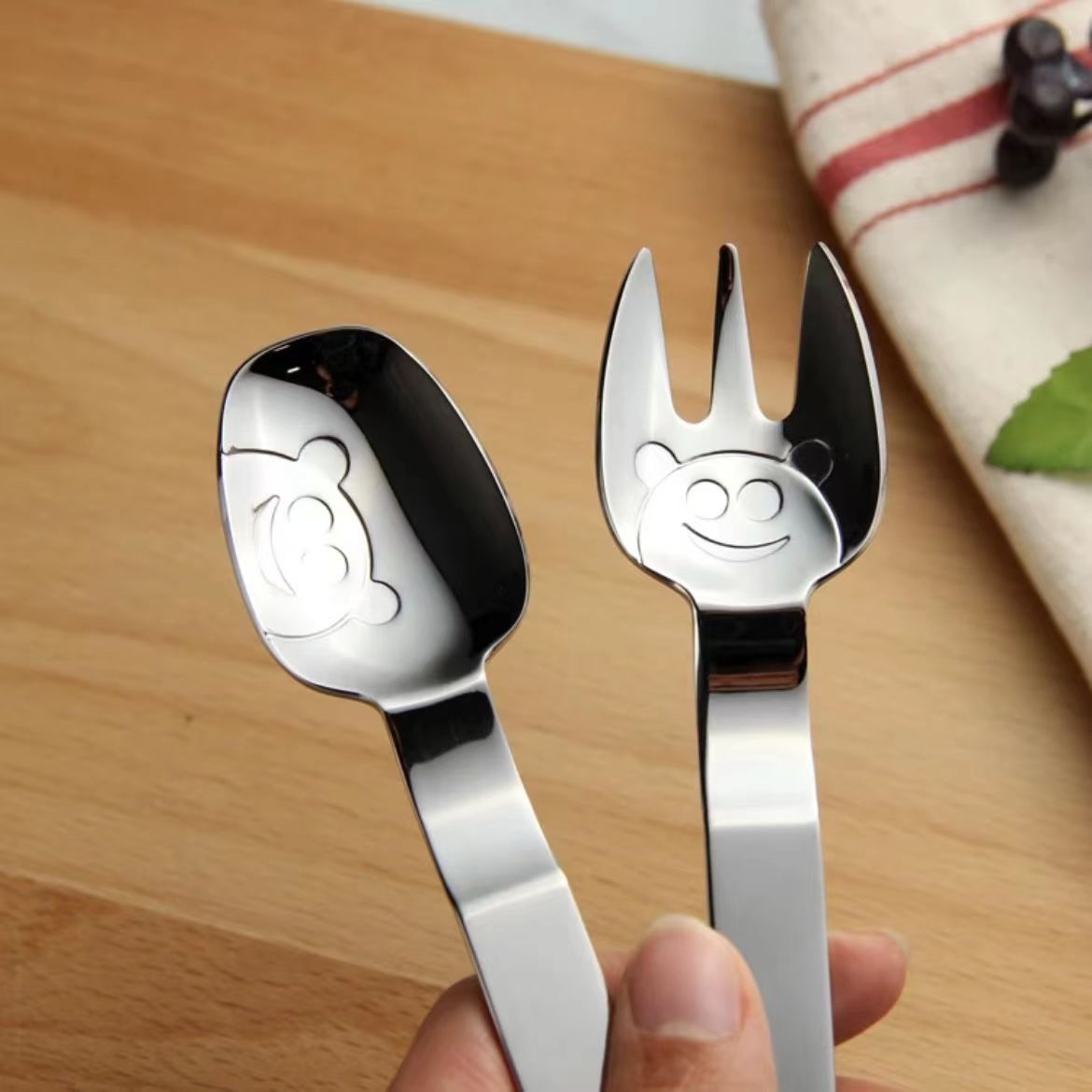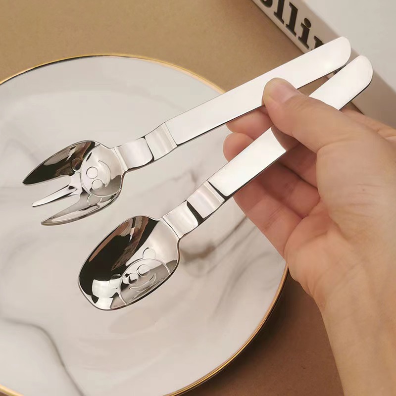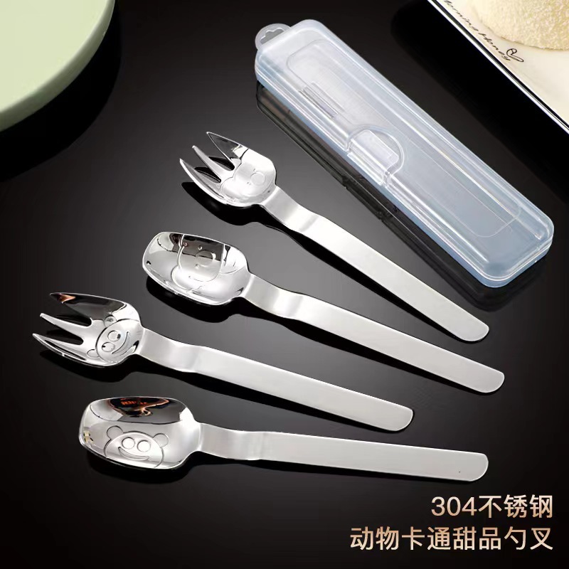 만화 304 스테인레스 스틸 어린이 숟가락 포크 아기 숟가락 어머니와 아기 음식 보충제 수유 숟가락 케이크 디저트 과일 포크스토어 가기