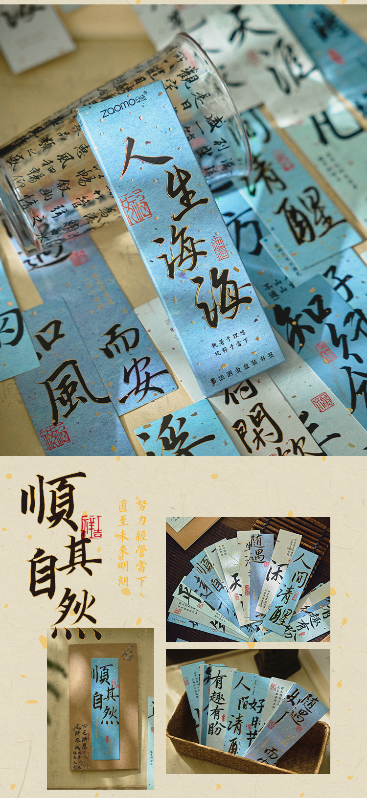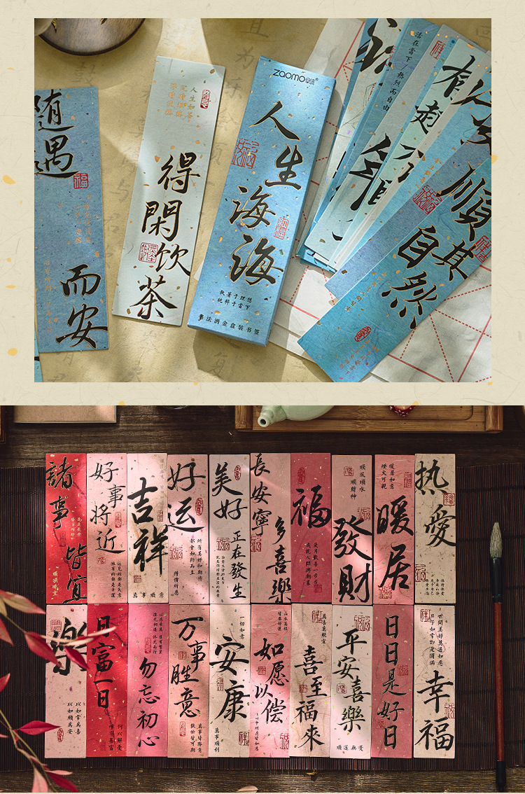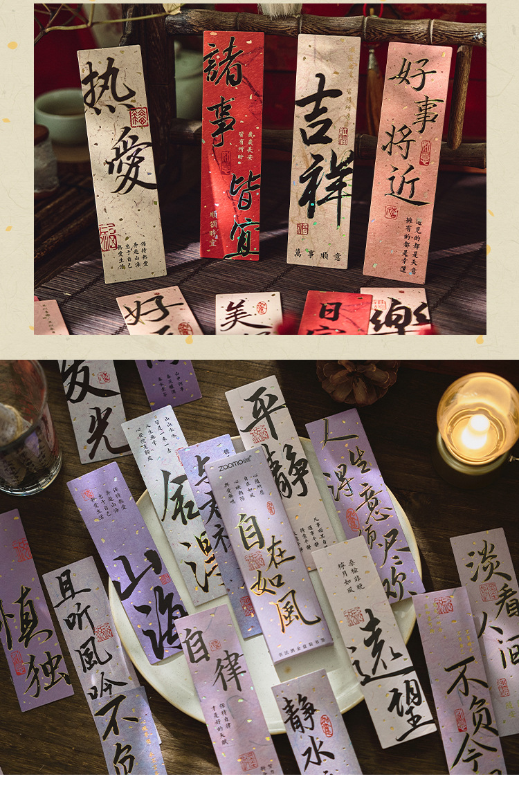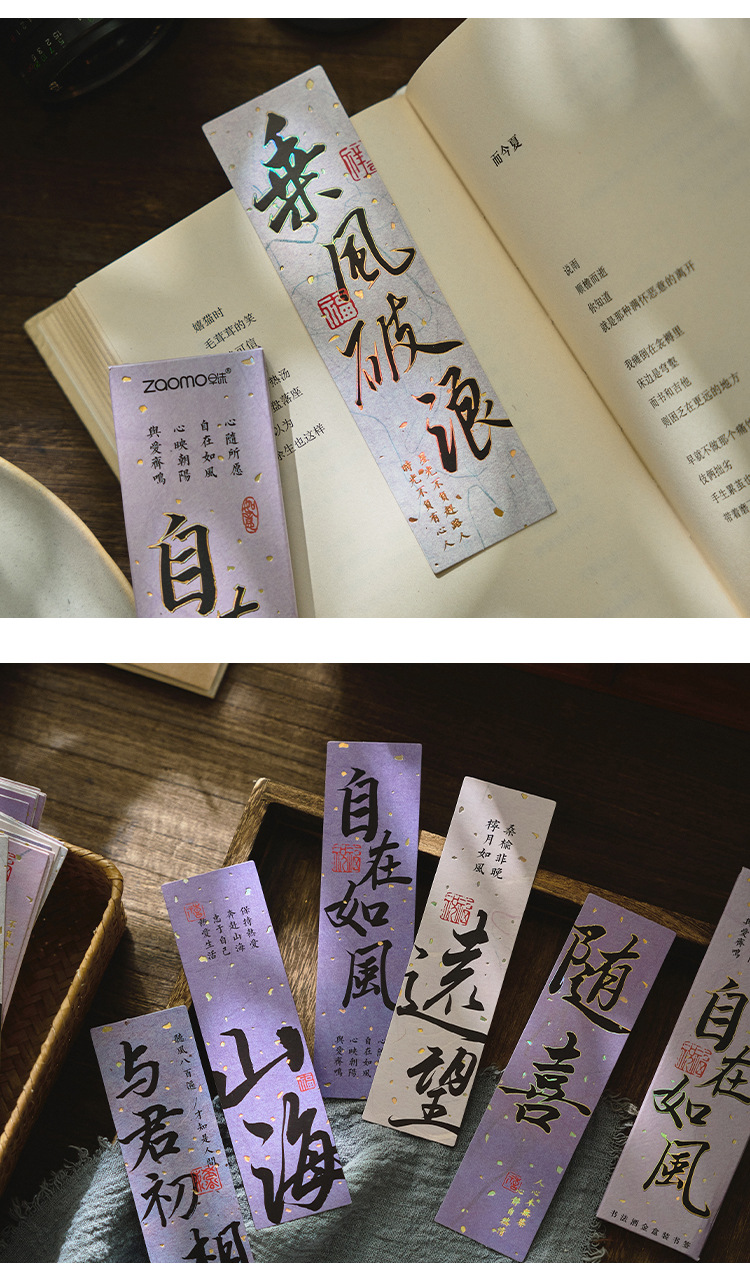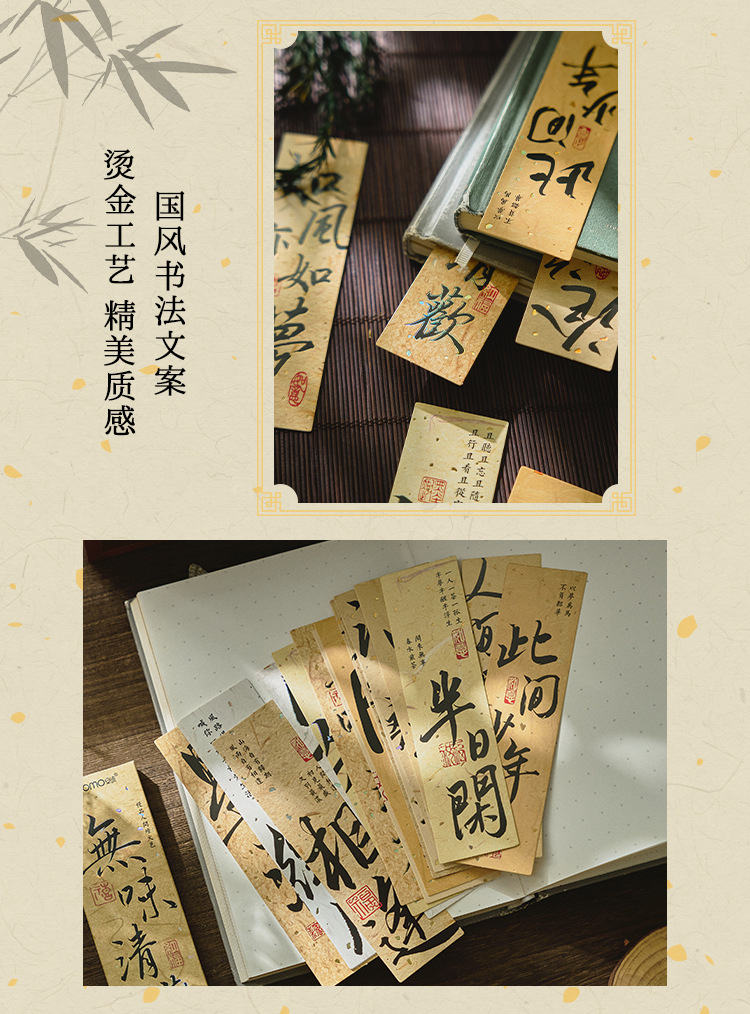 긴 노래 끝나지 않은 금박 종이 책갈피 고전 중국식 시 서도 손 계정 선물 독서 페이지