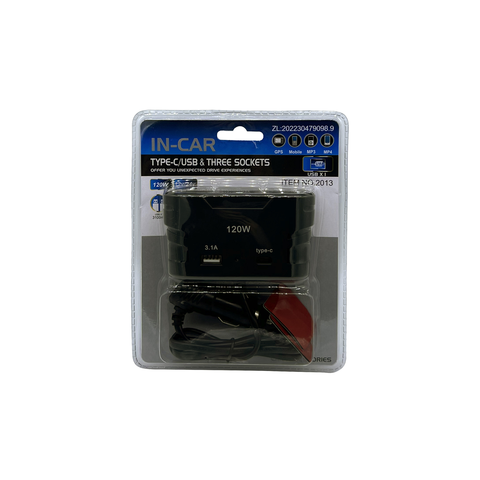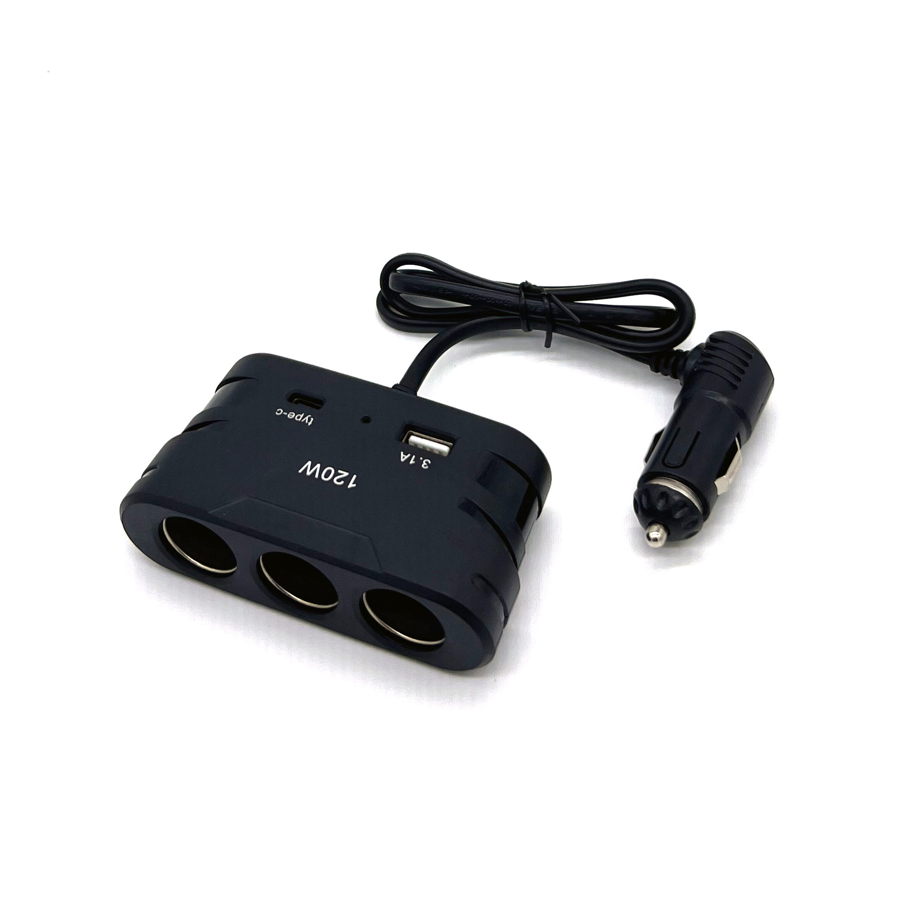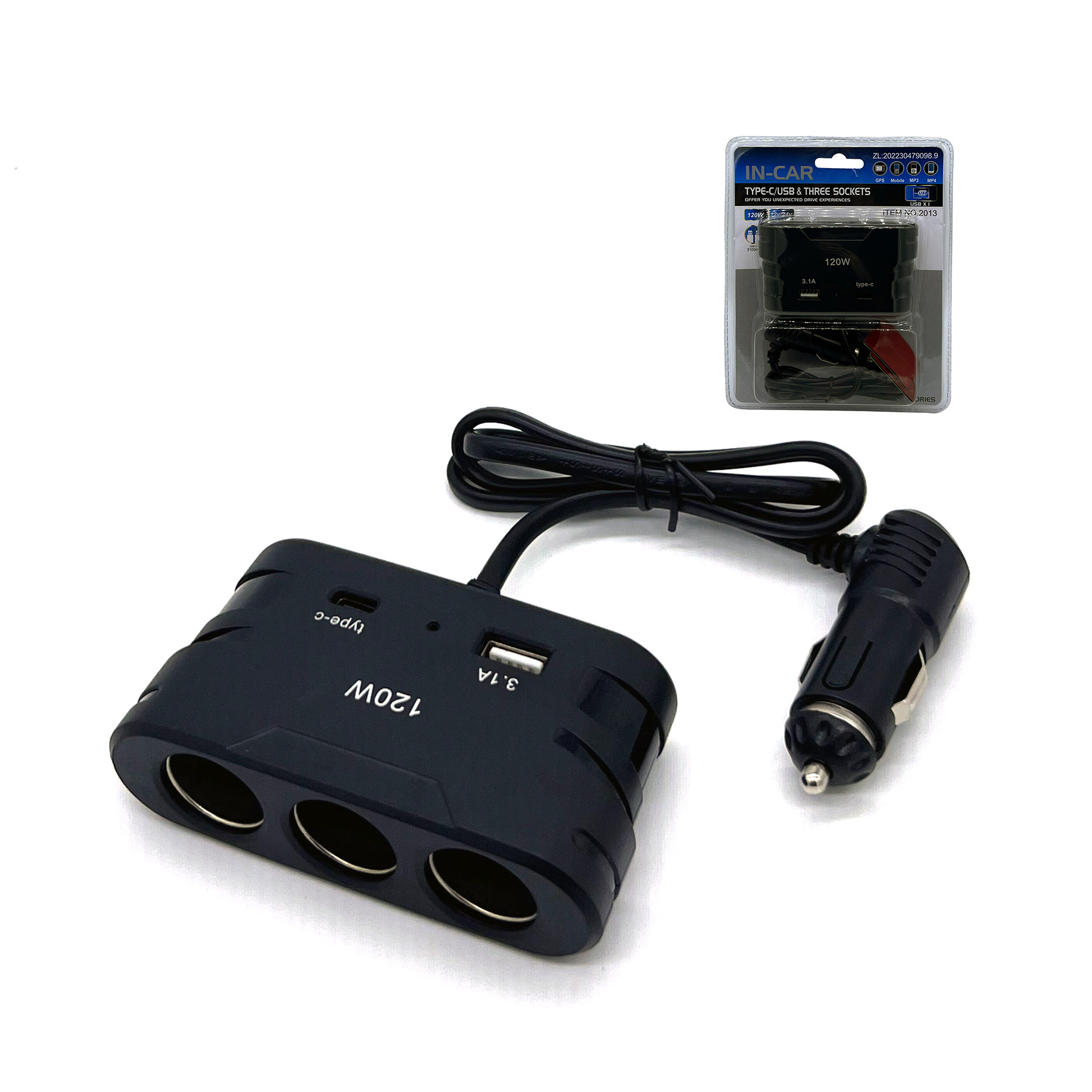 车用转换器电源3孔一转三大功率车载点烟器TYPE-C带USB车载充电器