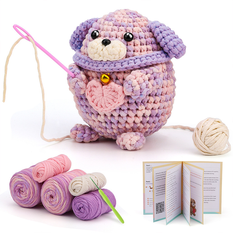 • 샤인 핑크 보라색면 강아지 * 크로 셰 뜨개질 소재 가방 + 영어 비디오 * 50% * 일반 * 21S * 4