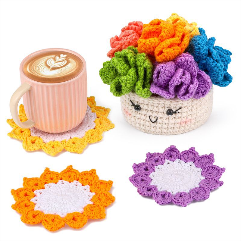 • 녹색 꽃 컵 받침 * 크로 셰 뜨개질 소재 패키지 + 영어 비디오 * 50% * 일반 * 21S * 4