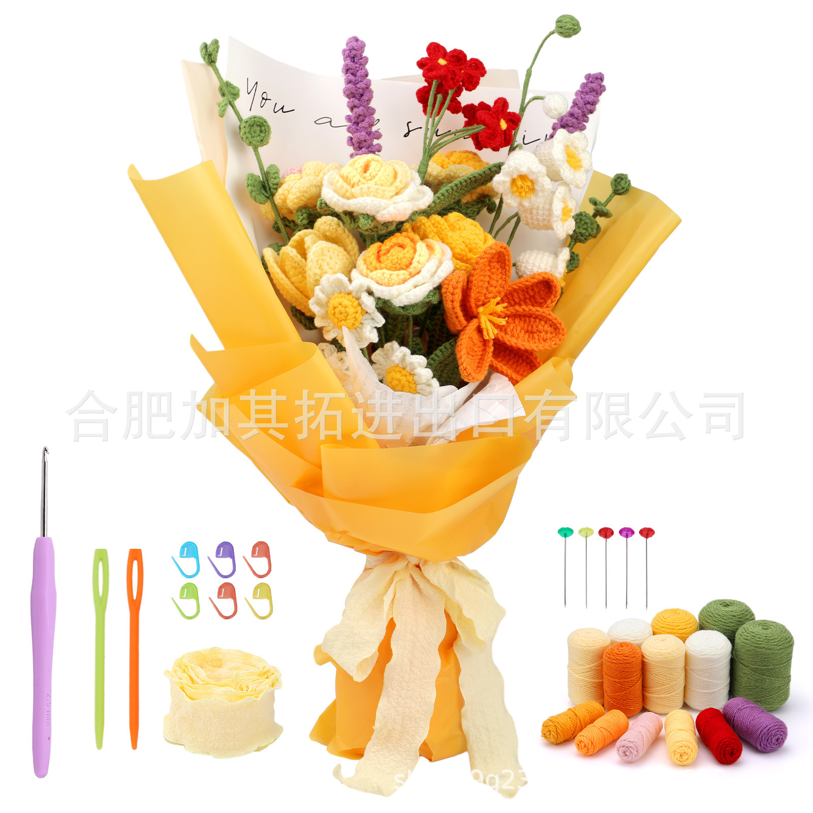 • 해바라기 꽃다발 * 크로 셰 뜨개질 소재 팩 + 영어 비디오 * 50% * 일반 * 21S * 4