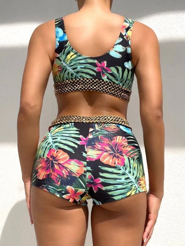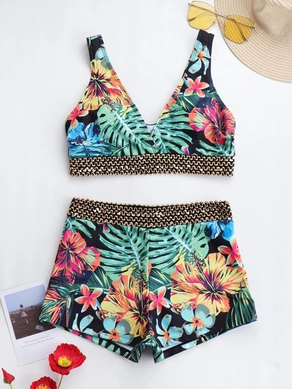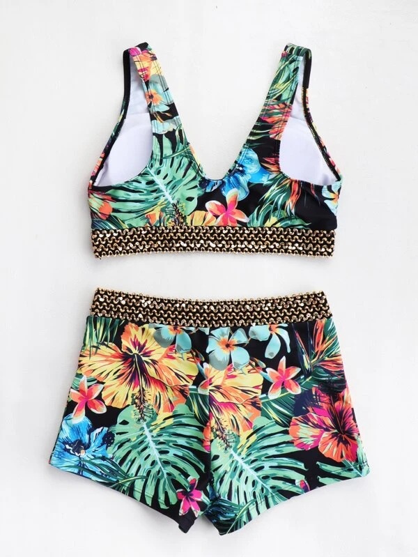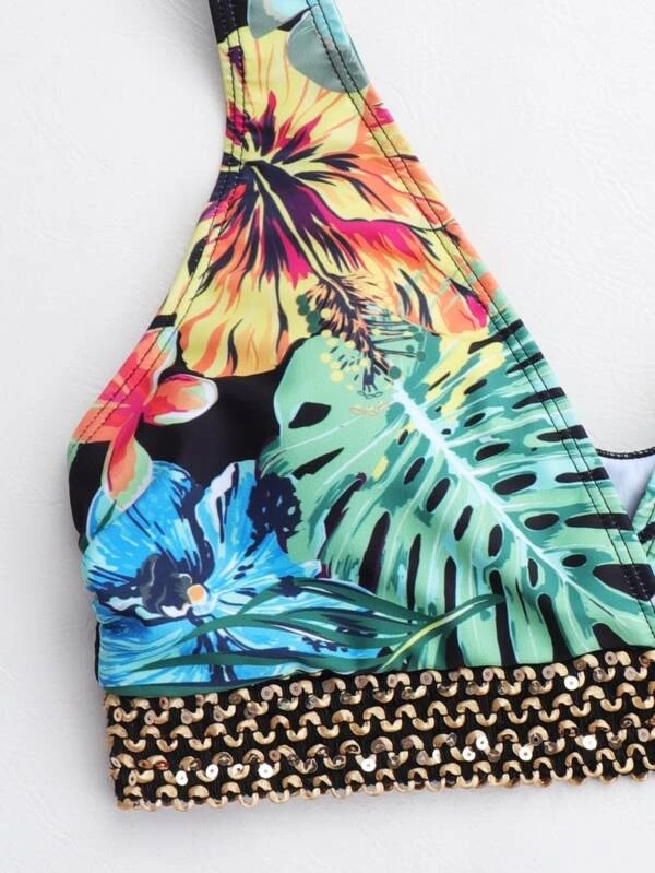2024 유럽과 미국의 새로운 대외 무역 크로스 보더 분할 인쇄 등이없는 V-넥 보글 섹시한 비키니 수영복 숙녀스토어 가기