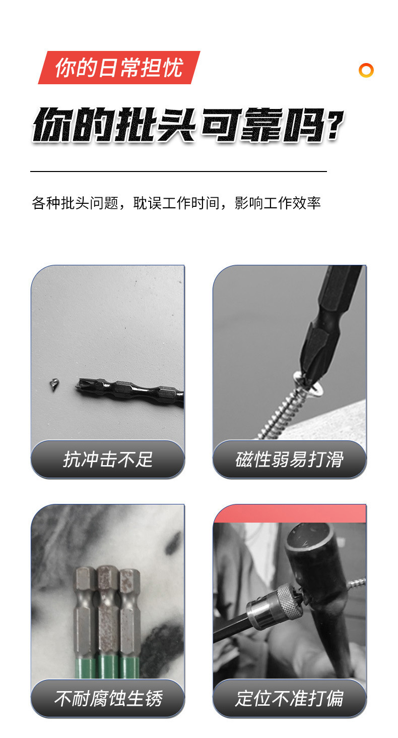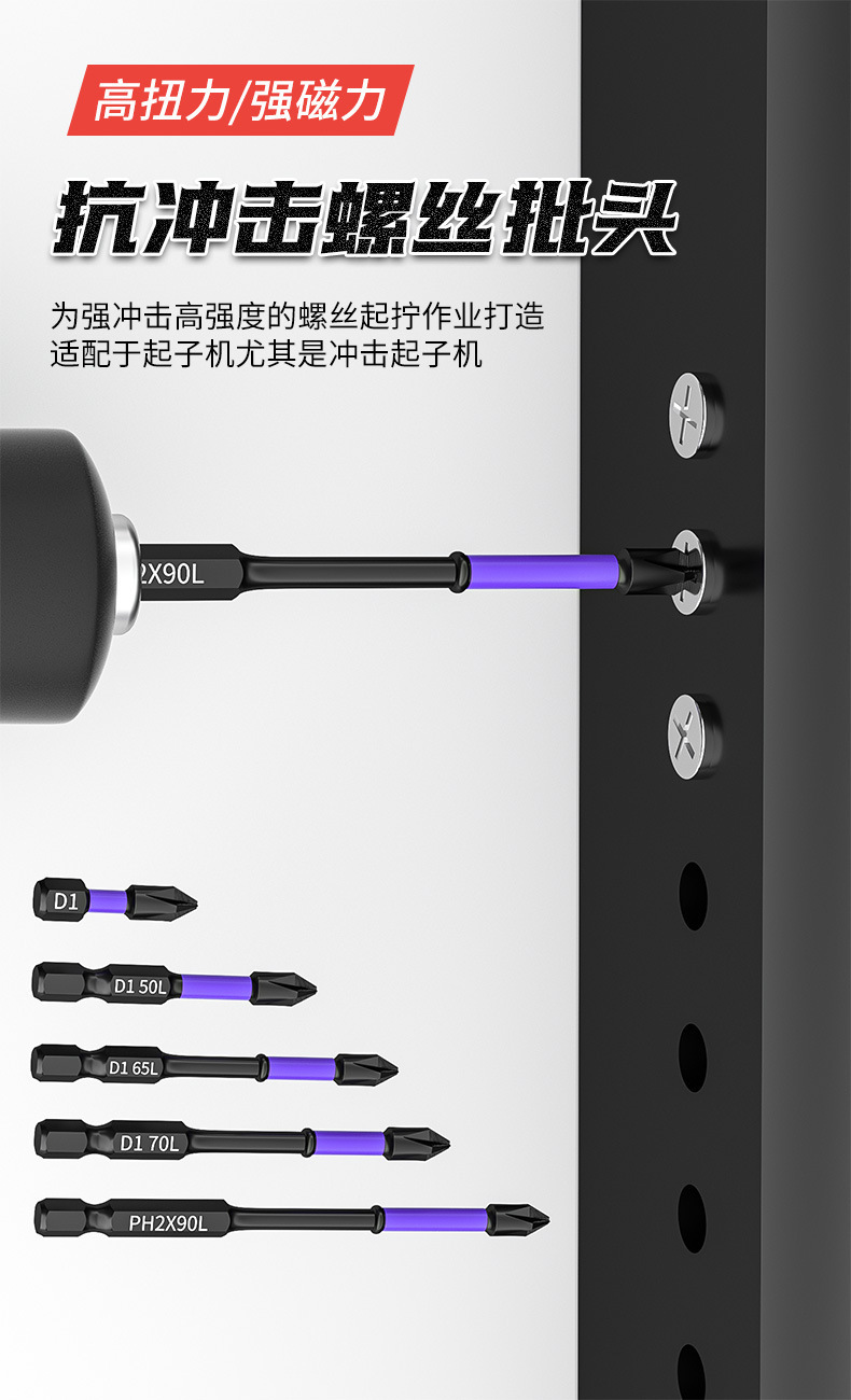 D1 미끄럼 방지 및 충격 방지 비트, 십자 드라이버 비트, 자석 전기 드릴, 강력한 자석 드라이버 비트, 경도가 높은 치아 및 강화 처리