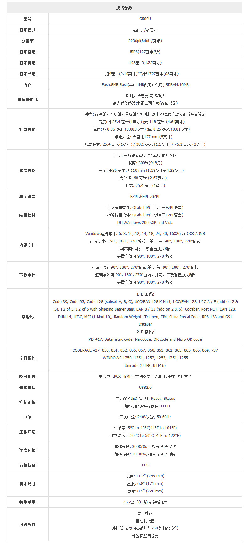 • G500U[203DPI] 바코드 프린터