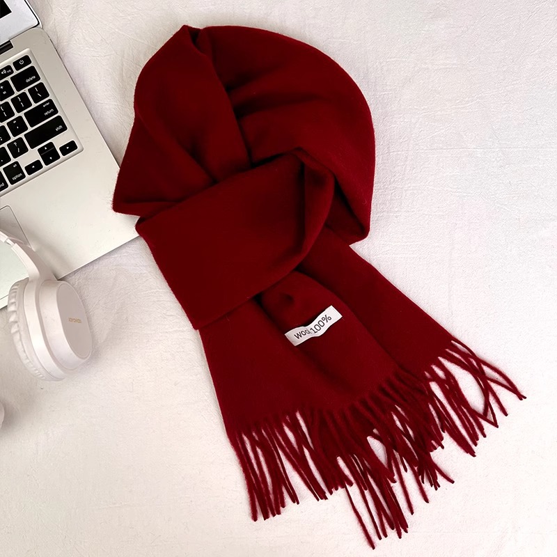 퓨어 울 남성용 스카프 2023 새로운 겨울 모든 경기 간단한 젊은 사람들 단색 스카프 소녀의 생일 선물