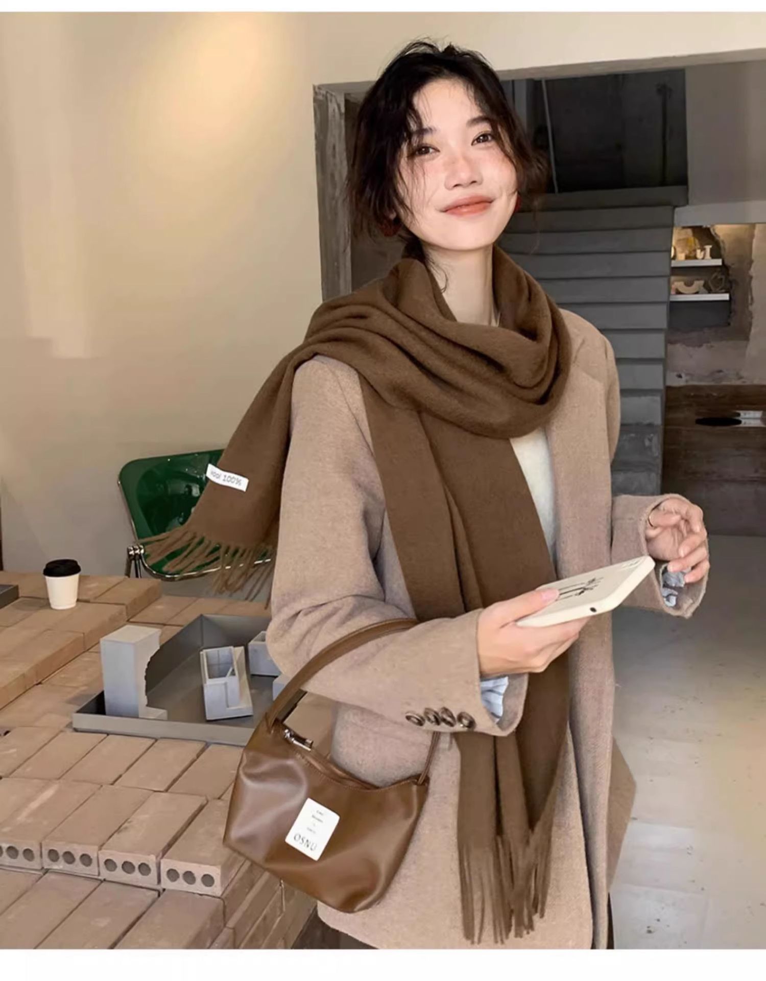 퓨어 울 남성용 스카프 2023 새로운 겨울 모든 경기 간단한 젊은 사람들 단색 스카프 소녀의 생일 선물스토어 가기
