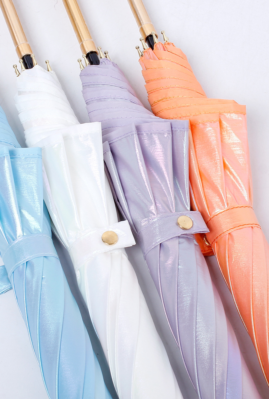 재고 R1003 오로라 컬러 매직 울트라 얇은 천 UV 선 스크린 우산 이중 목적 직선 긴 우산 울트라 라이트 217 g