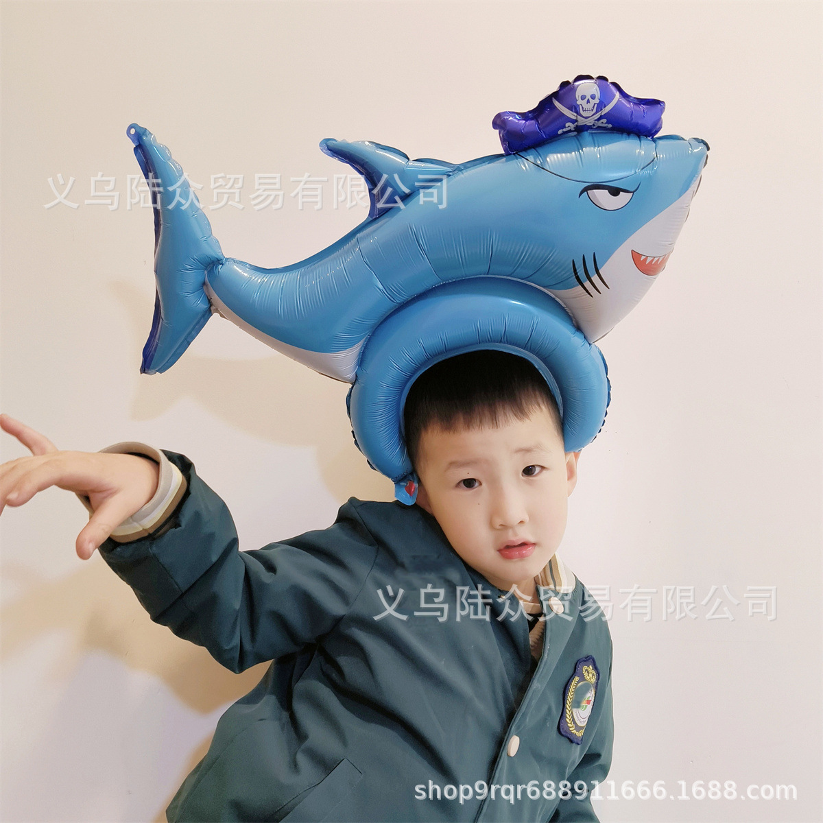 초대형 상어 모자 어린이 풍선 그물 빨간 머리 후프 장식 만화 알루미늄 필름 풍선 유치원 푸시 스톨