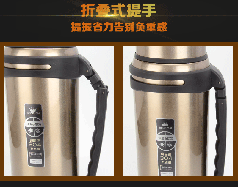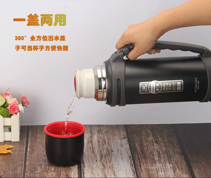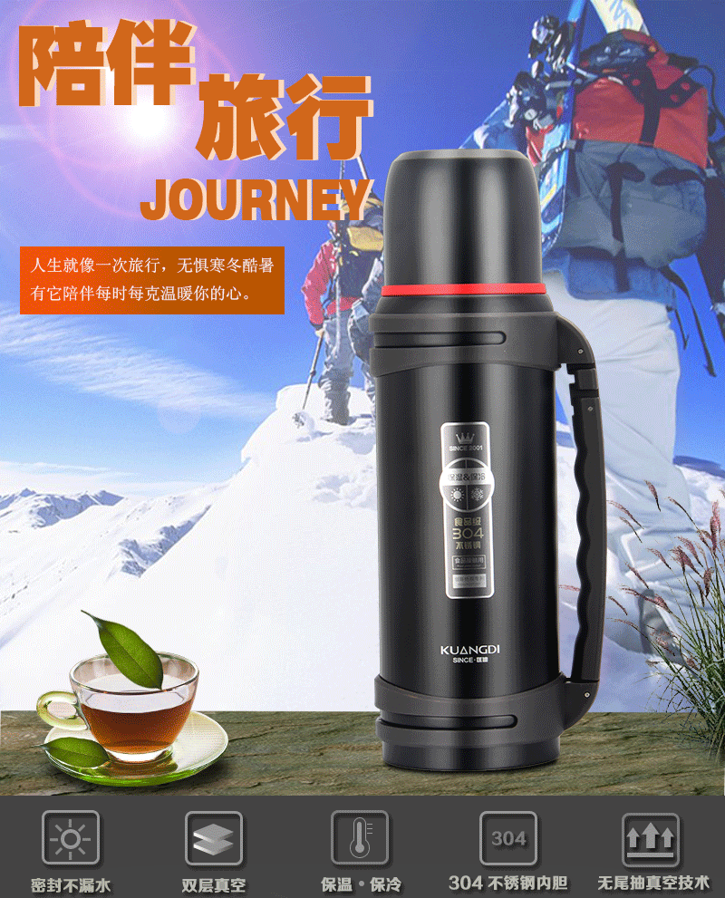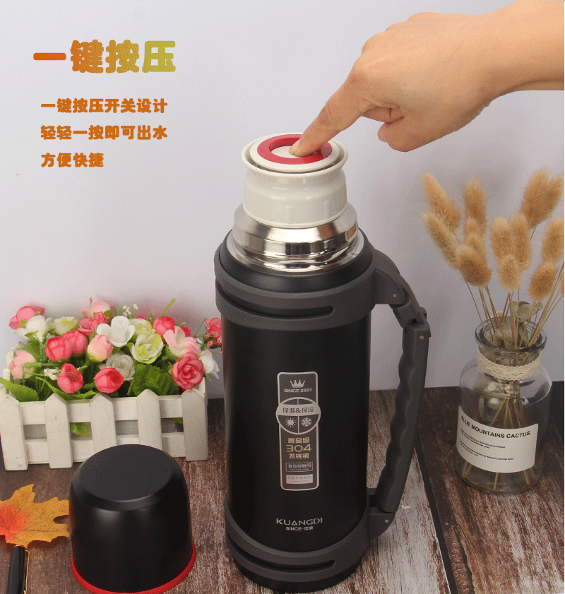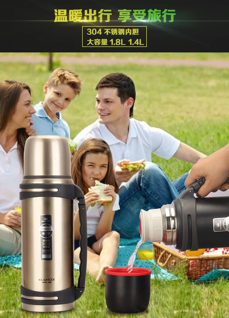 Kuangdi 보온병 진공 304 스테인레스 스틸 구리 도금 라이너 절연 주전자 야외 여행 등산 인쇄 가능한 로고