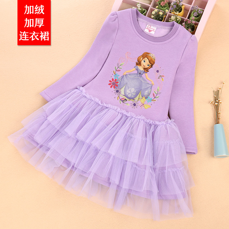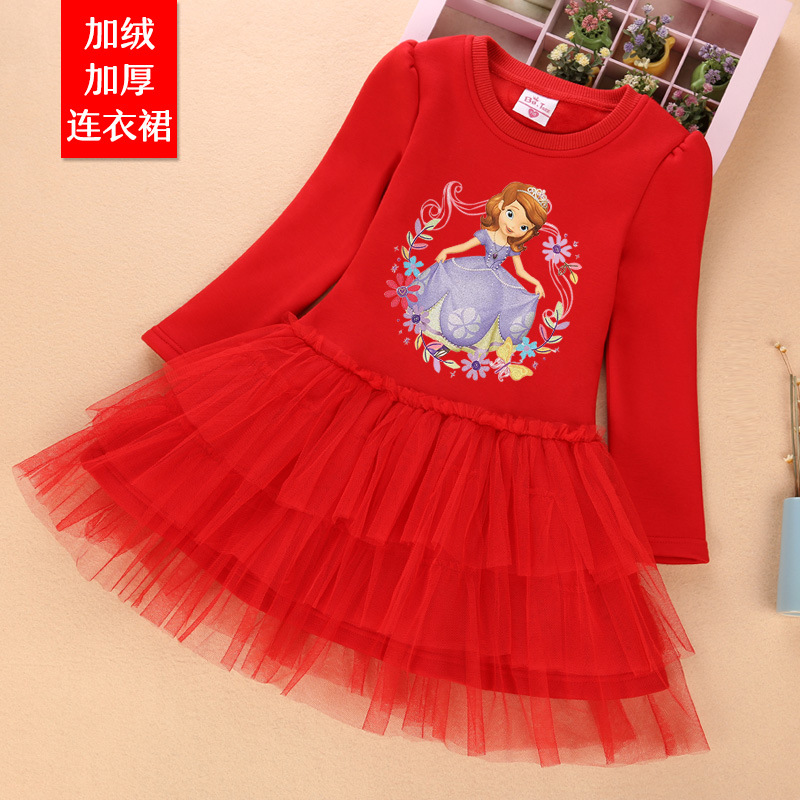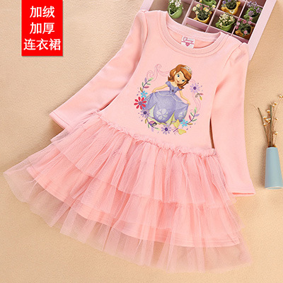 여자 기모 두꺼운 원피스 가을과 겨울 아기 공주 치마 어린이 만화 치마 여아 원피스 벨벳 베일 스커트