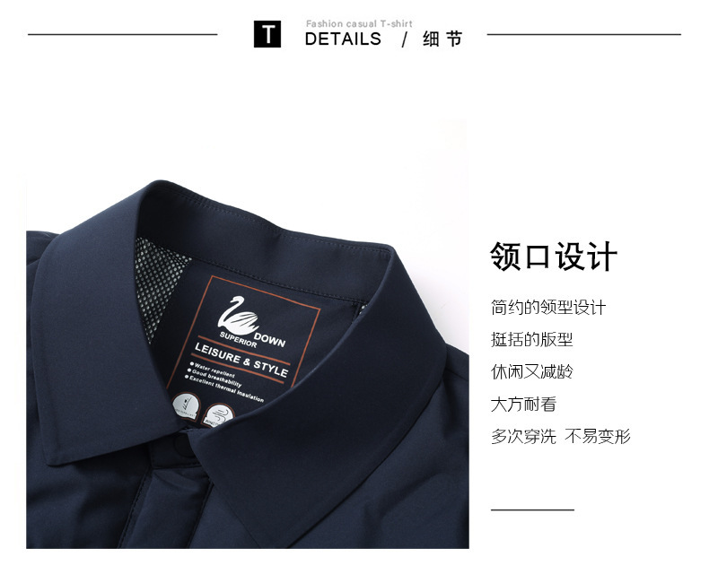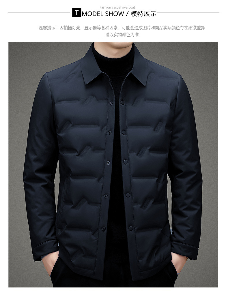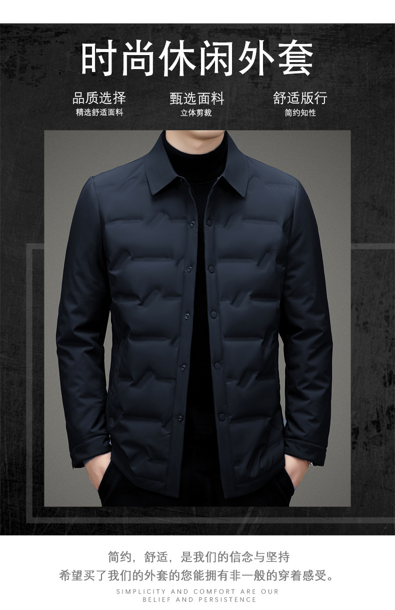 2023冬季新款男士中青年翻领白鸭绒时尚休闲衬衫羽绒服外套