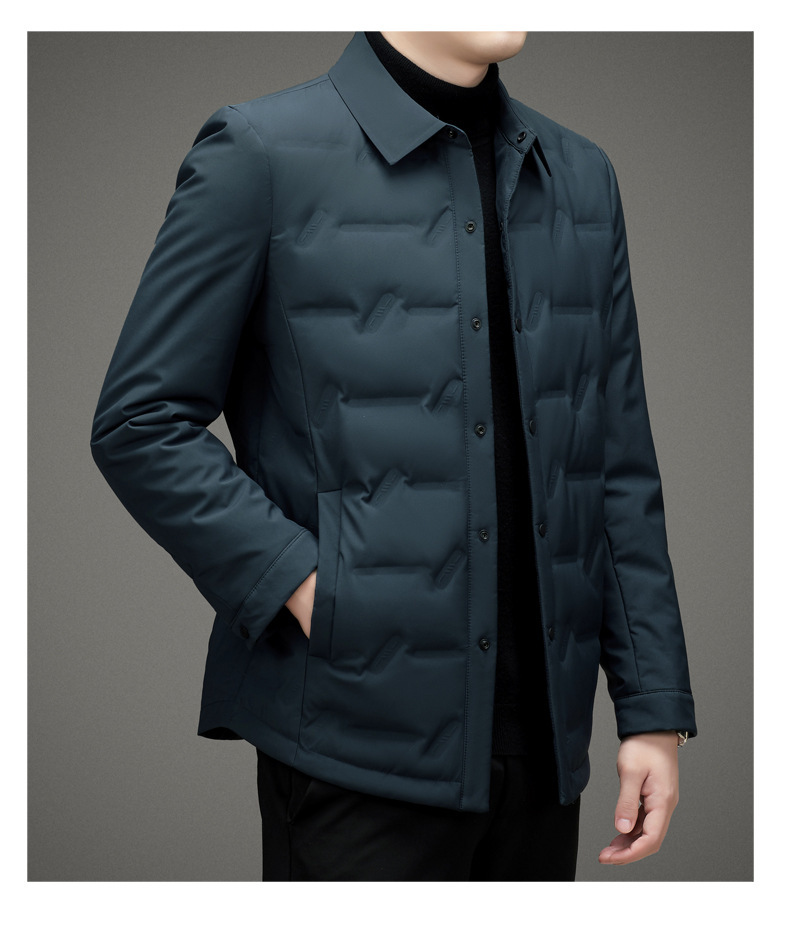 2023 겨울 새로운 남성 청년과 중년 옷깃 화이트 오리 다운 패션 캐주얼 셔츠 다운 재킷 코트