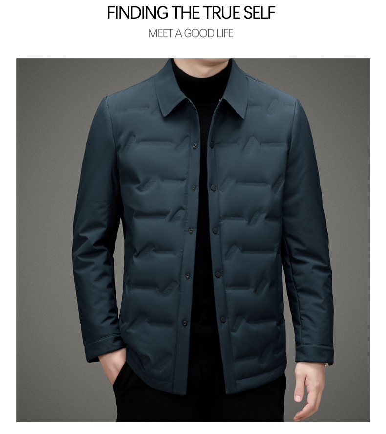 2023 겨울 새로운 남성 청년과 중년 옷깃 화이트 오리 다운 패션 캐주얼 셔츠 다운 재킷 코트스토어 가기