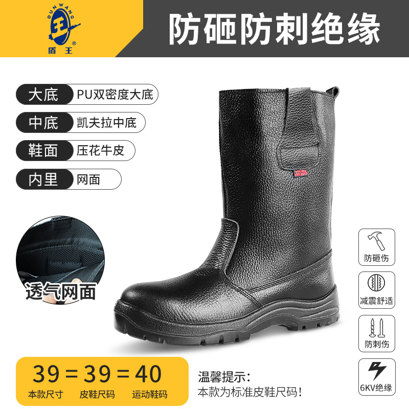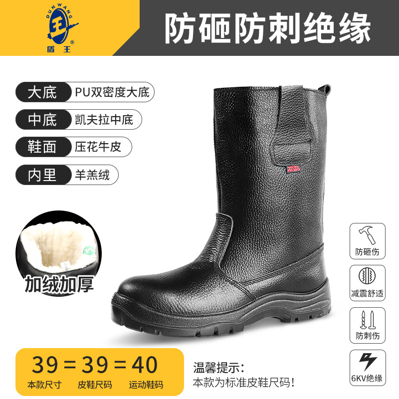 쉴드 킹 겨울 두꺼운 따뜻한 노동 보호 신발 남성용 안티 핀 마모 사이트 석탄 광산 다운 홀 부츠 소가죽 안전 신발