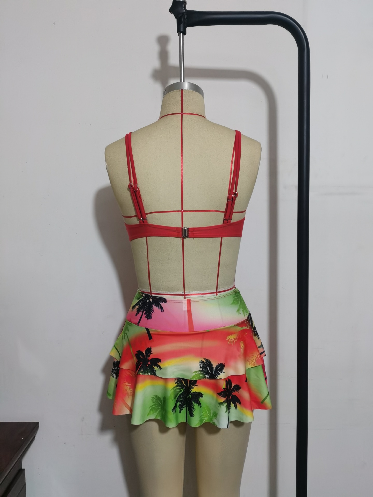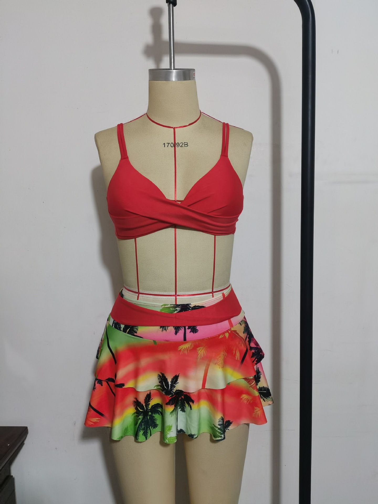 2024 새로운 국경을 넘는 유럽과 미국의 섹시한 스플릿 하이 허리가 인쇄 된 비키니 수영복 여성 비키니