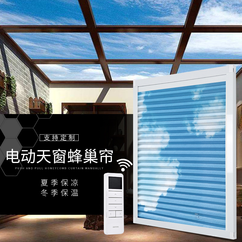 전기 벌집 커튼 제조업체 선샤인 룸 차양 수동 슬라이딩 완전 차광 발코니 단열 채광창 자동 벌집 커튼스토어 가기