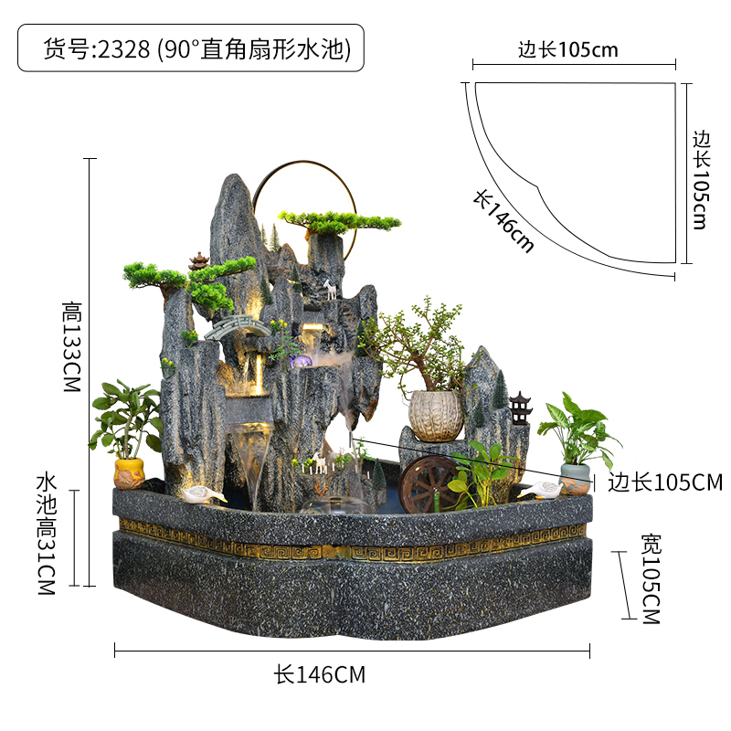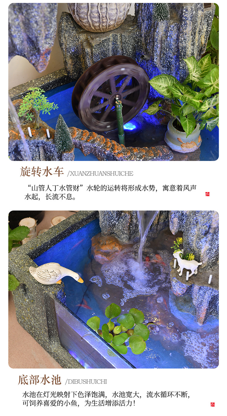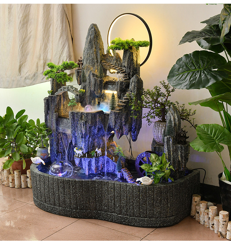 Rockery 유수 분수 사무실 풍수 바퀴 장식품 순환 물 풍경 호텔 거실 럭키 피쉬 연못 안뜰 빌라