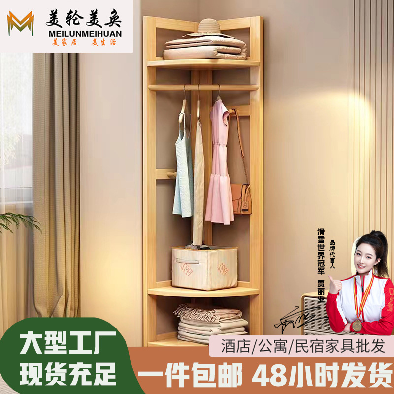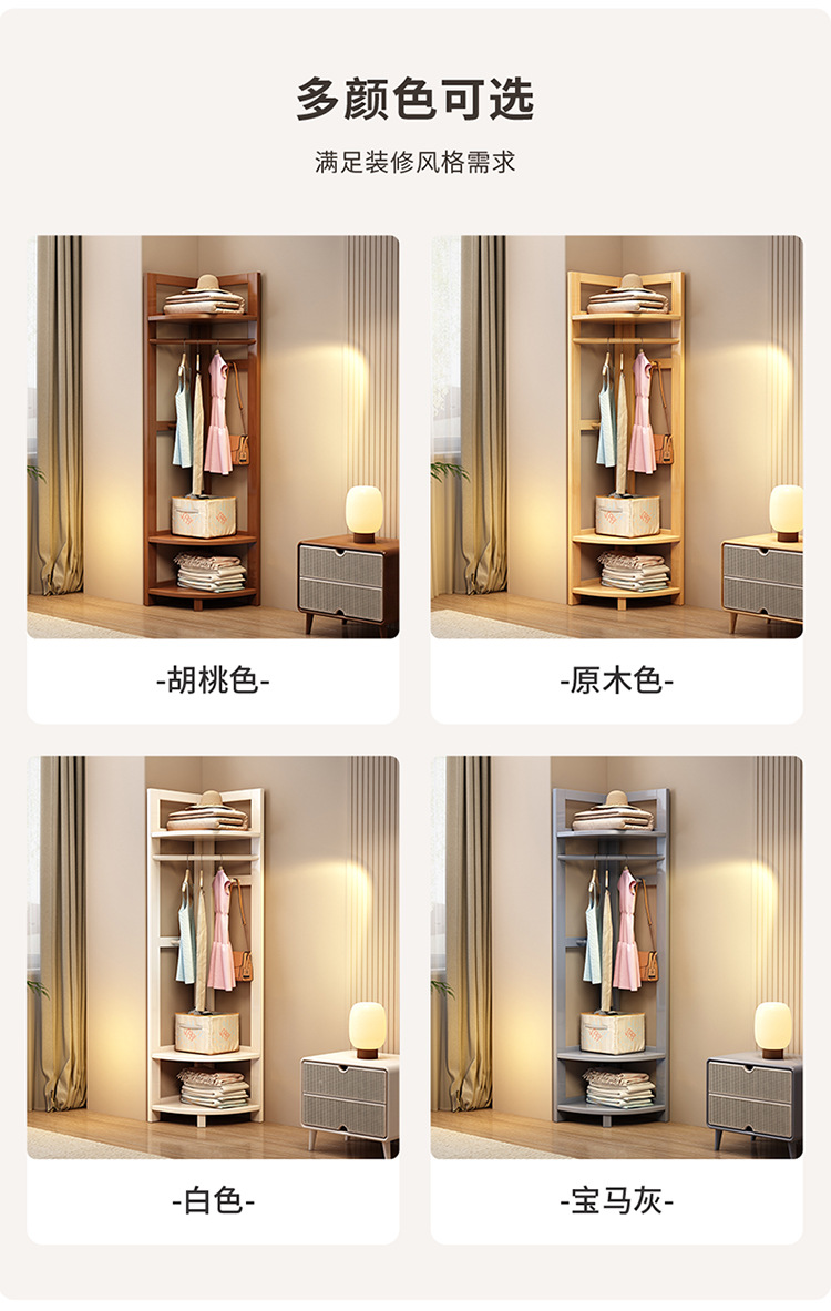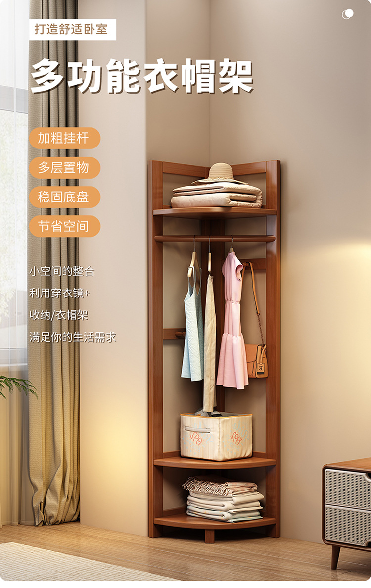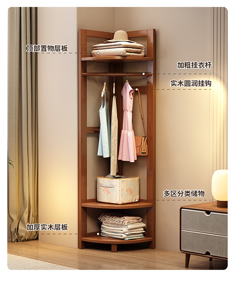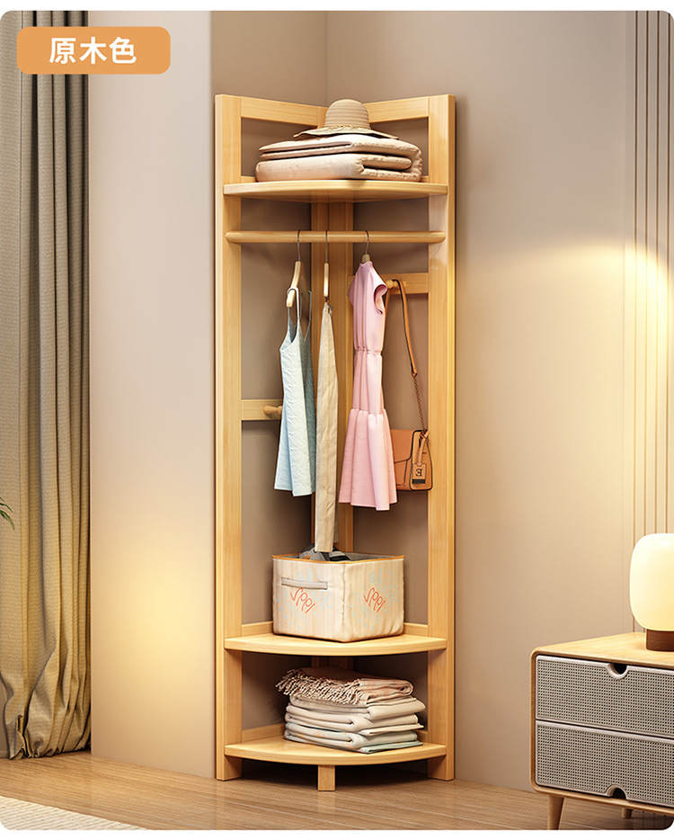간단한 가정용 코너 의류 랙 단단한 나무 코너 코트 랙 바닥 침실 걸이 보관 랙