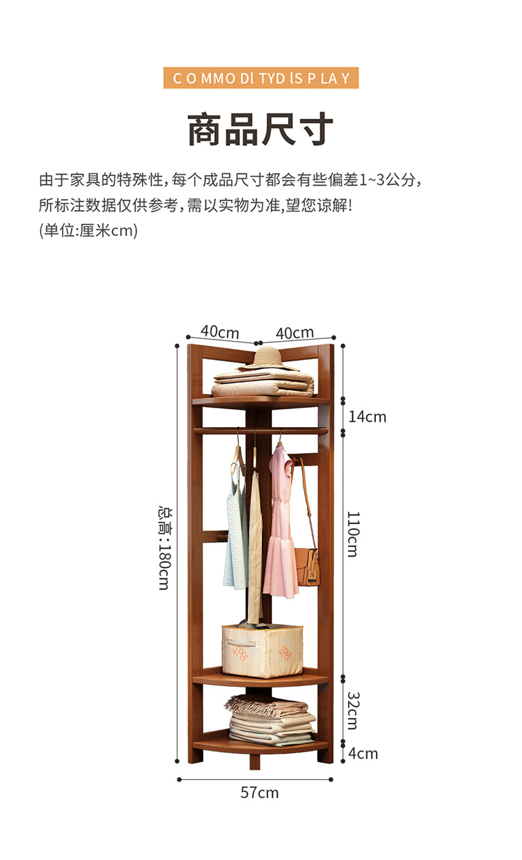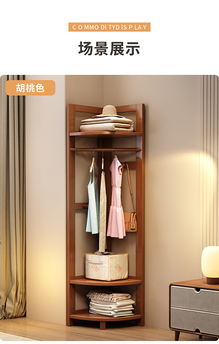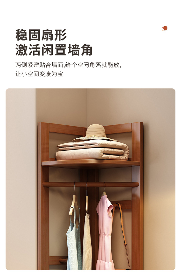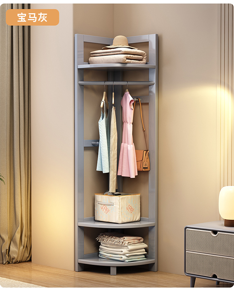 간단한 가정용 코너 의류 랙 단단한 나무 코너 코트 랙 바닥 침실 걸이 보관 랙
