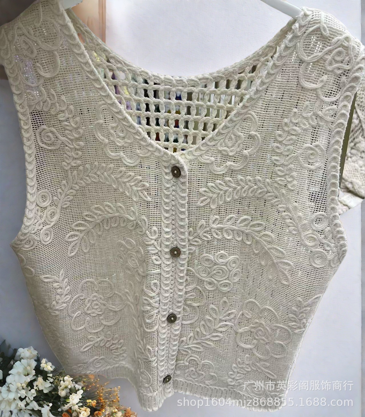 외관 부티크 민소매 조끼 카디건 중공 패션 가을 조끼 여성의 트렌디한 한국식 루즈한 모든 매치 틈새 탑