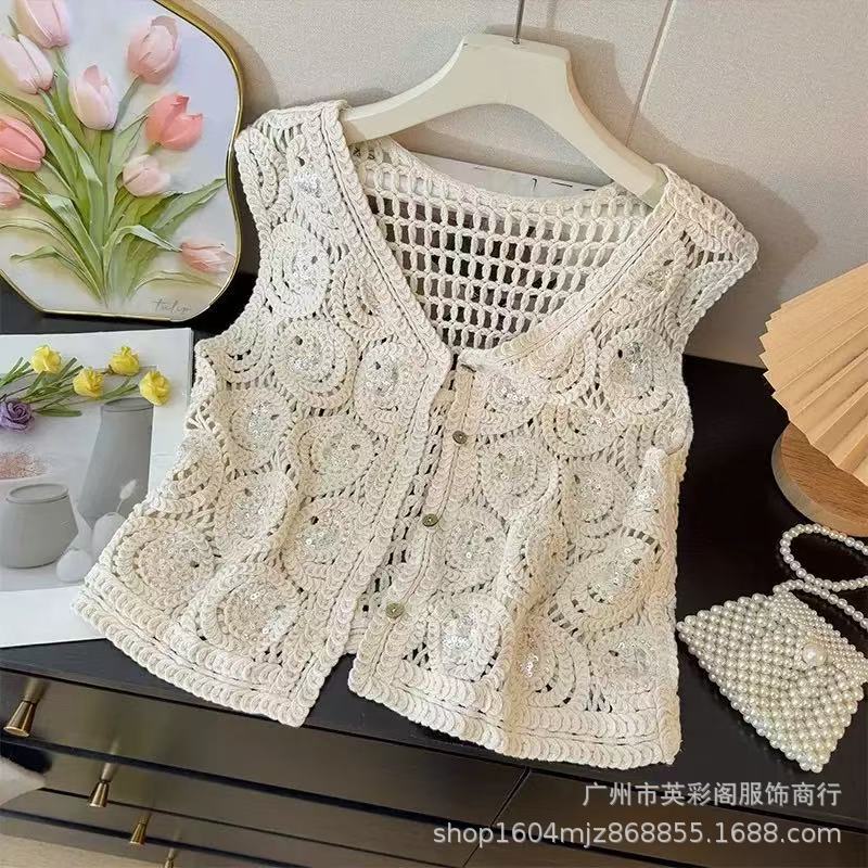 외관 부티크 민소매 조끼 카디건 중공 패션 가을 조끼 여성의 트렌디한 한국식 루즈한 모든 매치 틈새 탑스토어 가기
