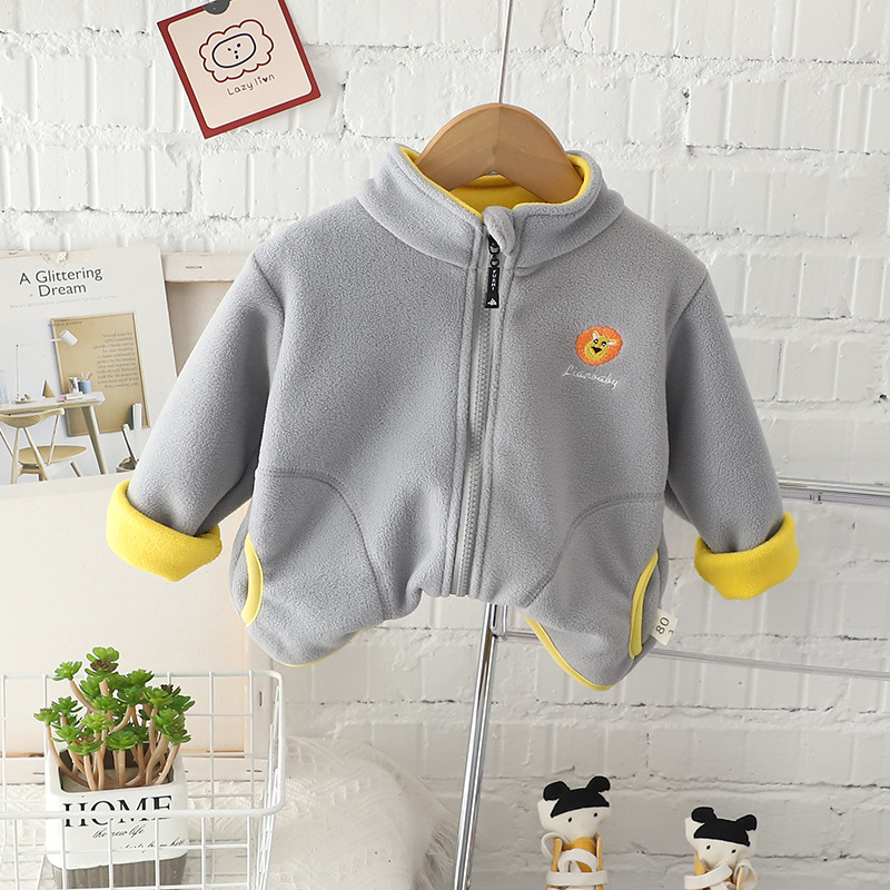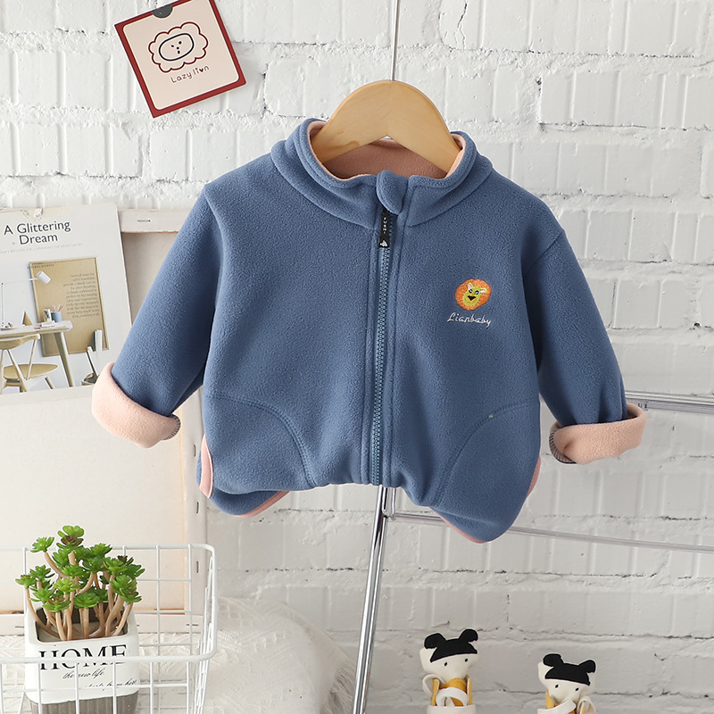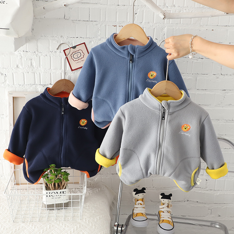 무료 배송 Yikids 아기 소년 겨울 기모 탑 아기 어린이 의류 리틀 보이 가을과 겨울 양털 지퍼 셔츠