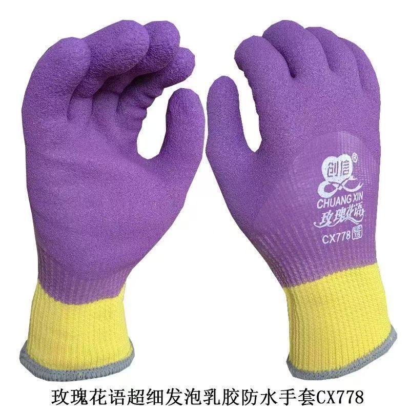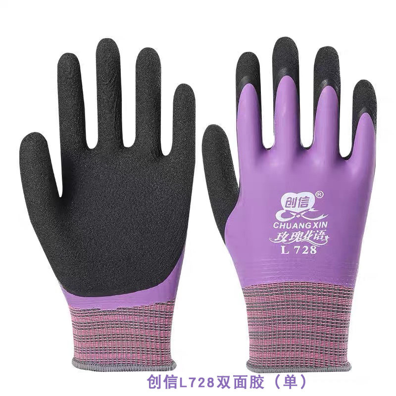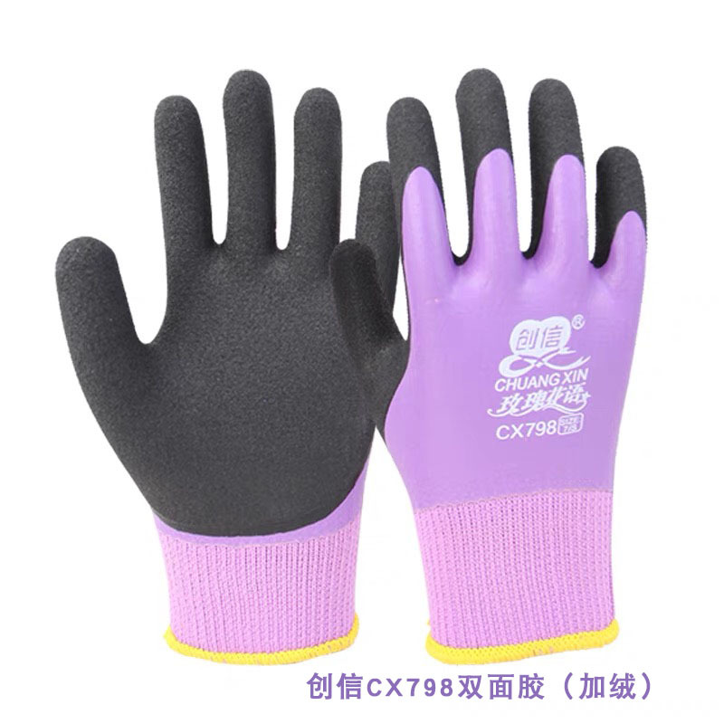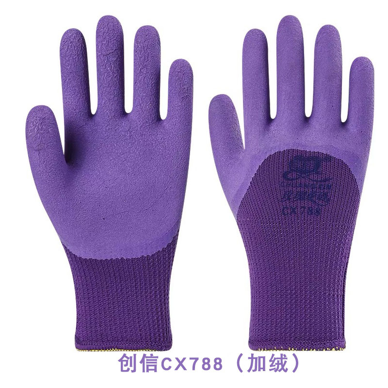 Chuangxin 장갑 728 양면 접착 고급 폼 라텍스 장갑 겨울 기모 루프 노동 보호 장갑 숙녀 스몰 사이즈