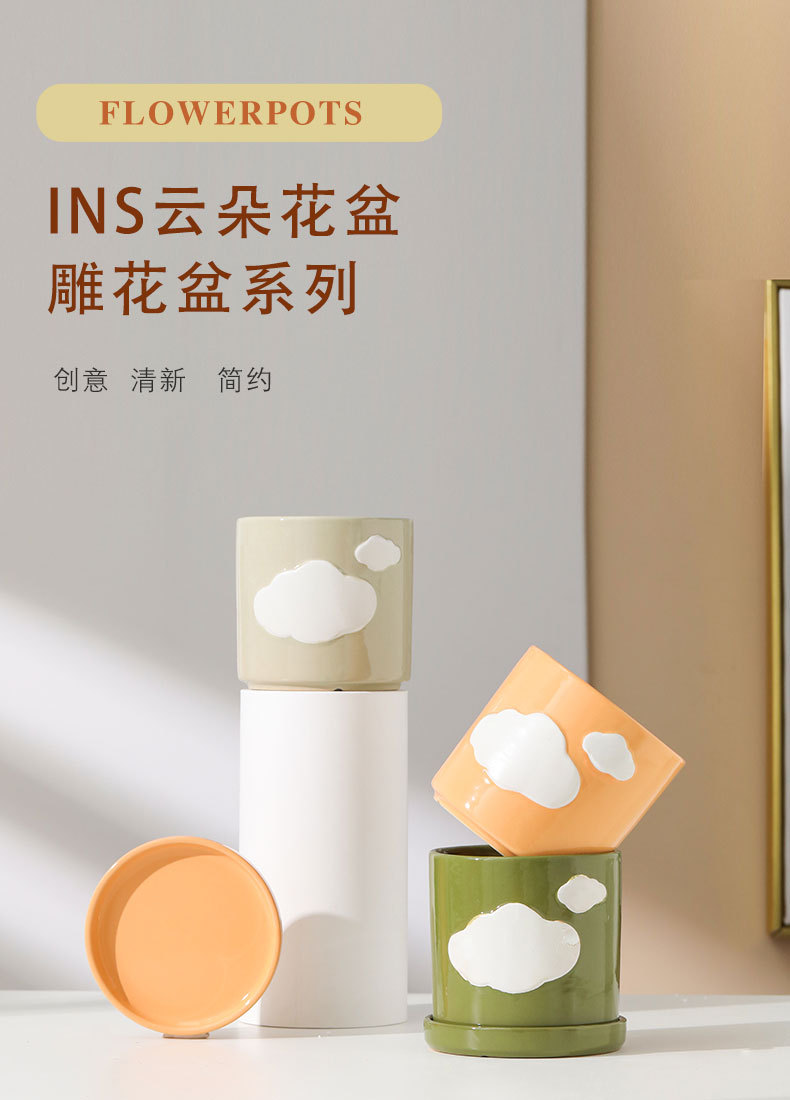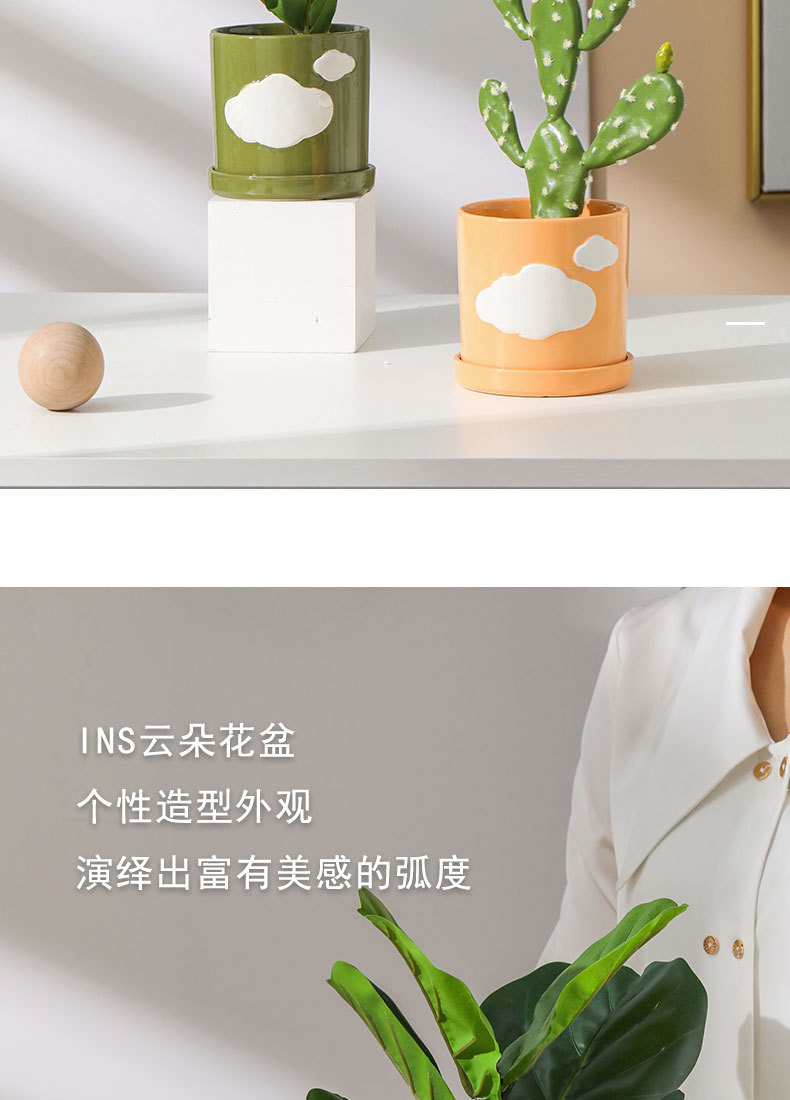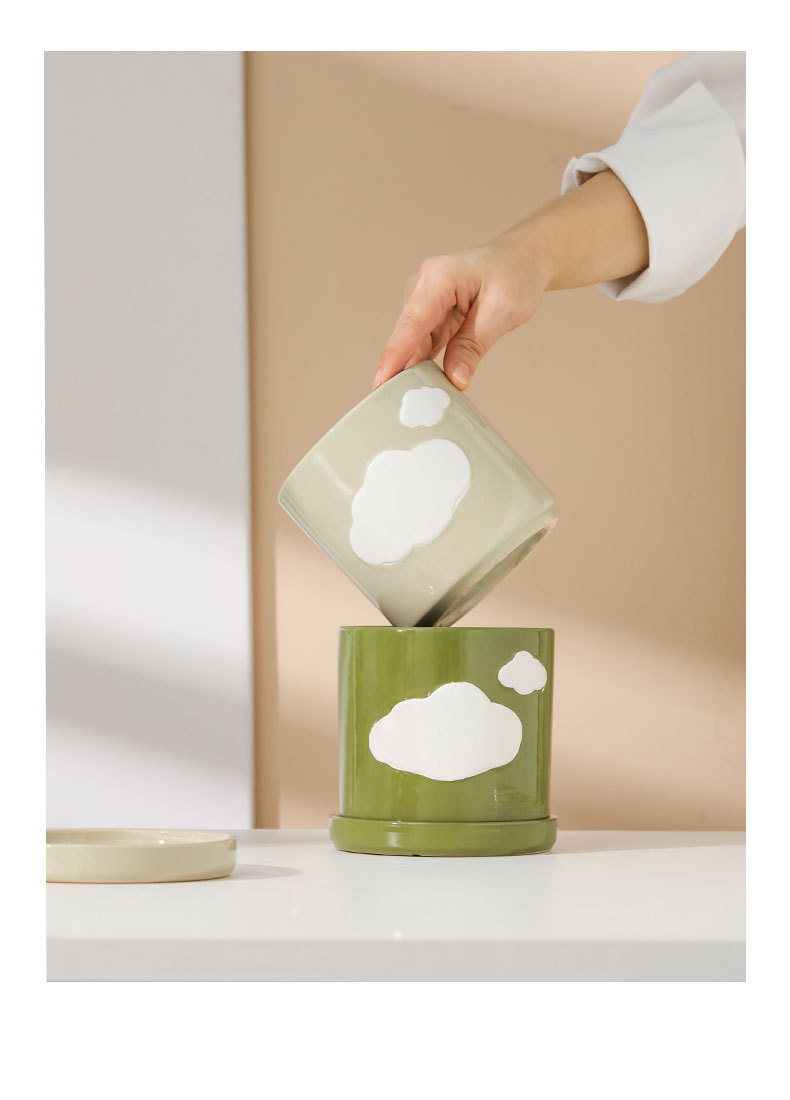 세라믹 화분 북유럽 스타일 현대적인 스타일 창조적 인 구름 녹색 식물 녹색 장미 홈 장식 사무실 책상 분지스토어 가기
