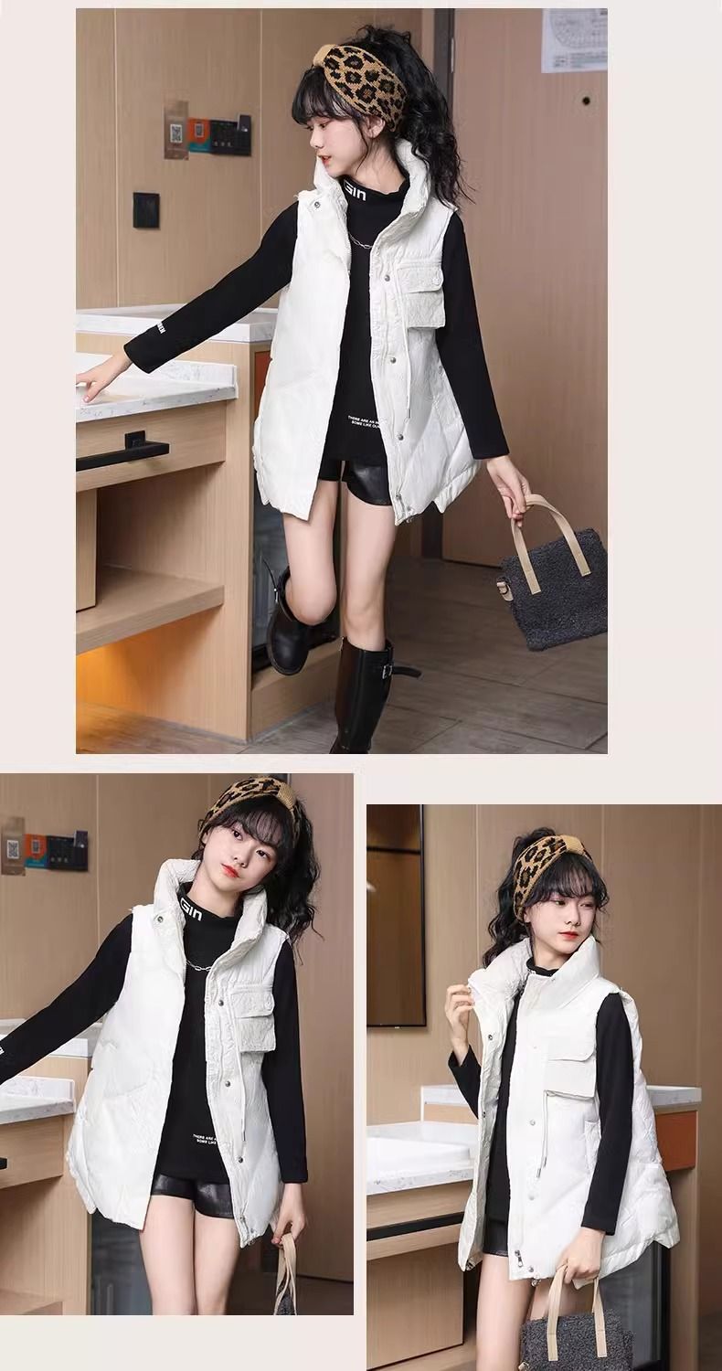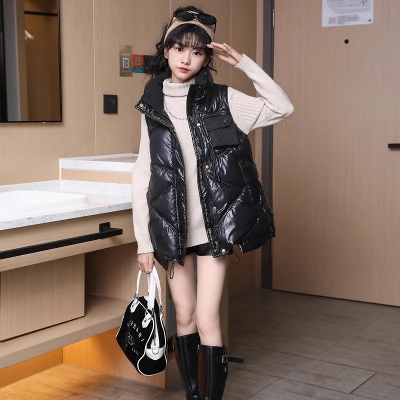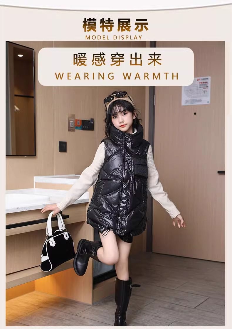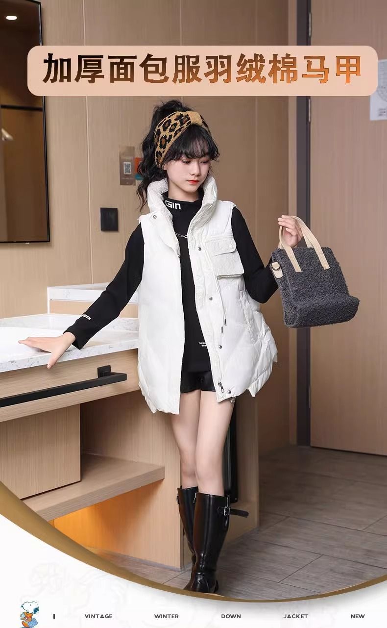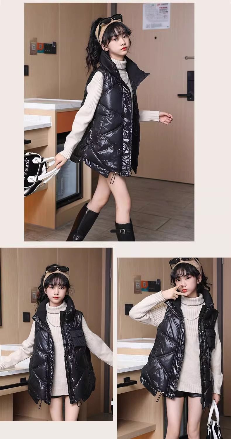 2023 가을과 겨울 소녀 다운 면 조끼 재킷 여자 중간 및 큰 아이 서양 스타일 밝은 얼굴 빨 유행 조끼스토어 가기