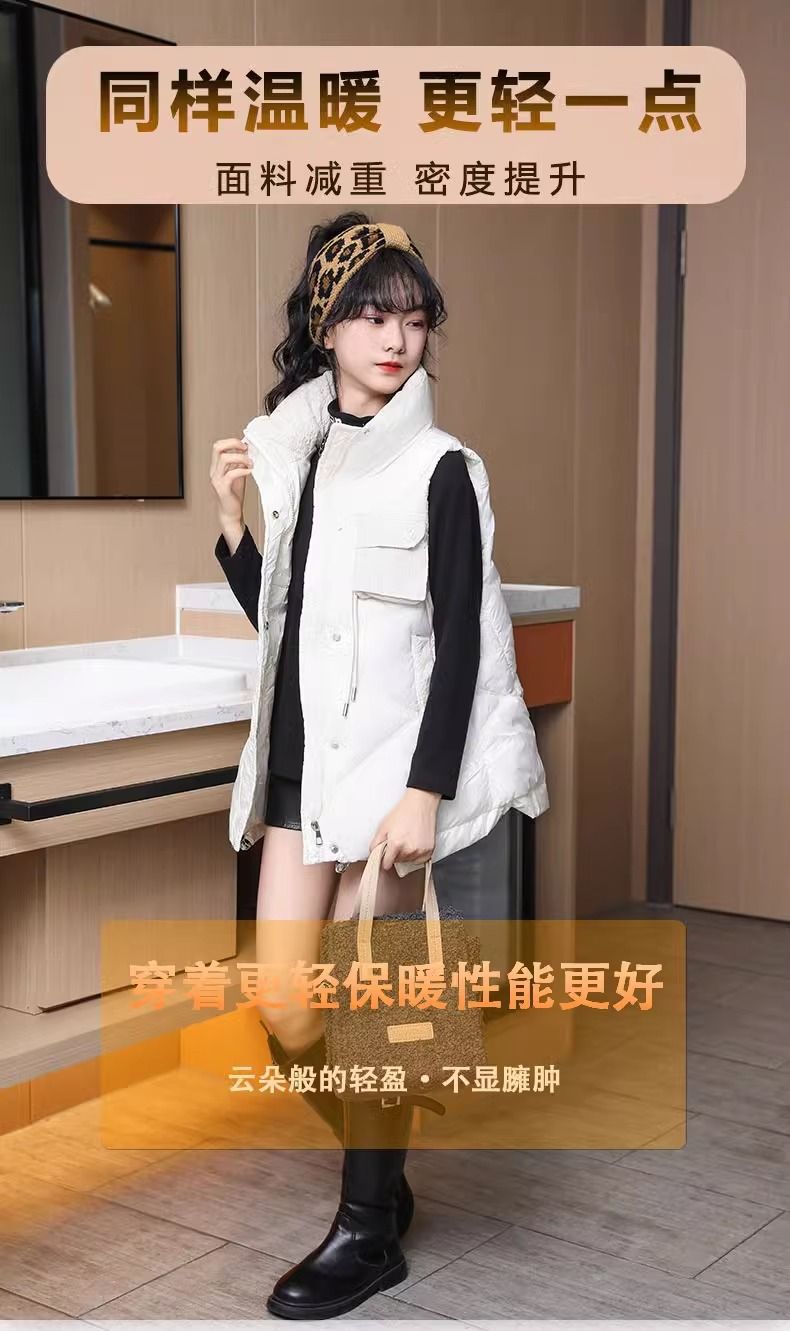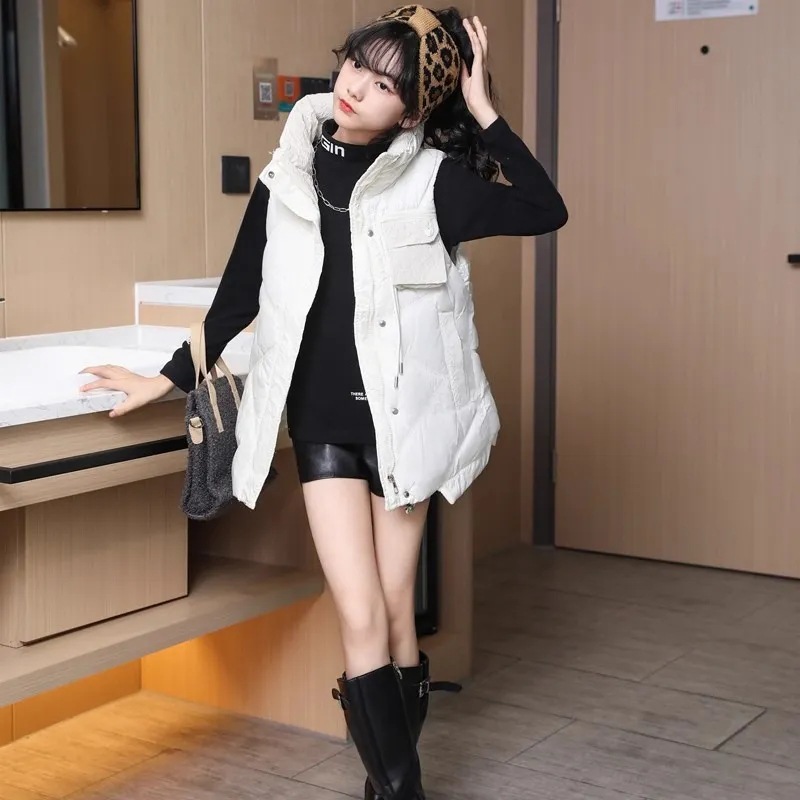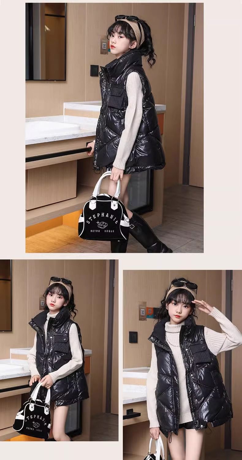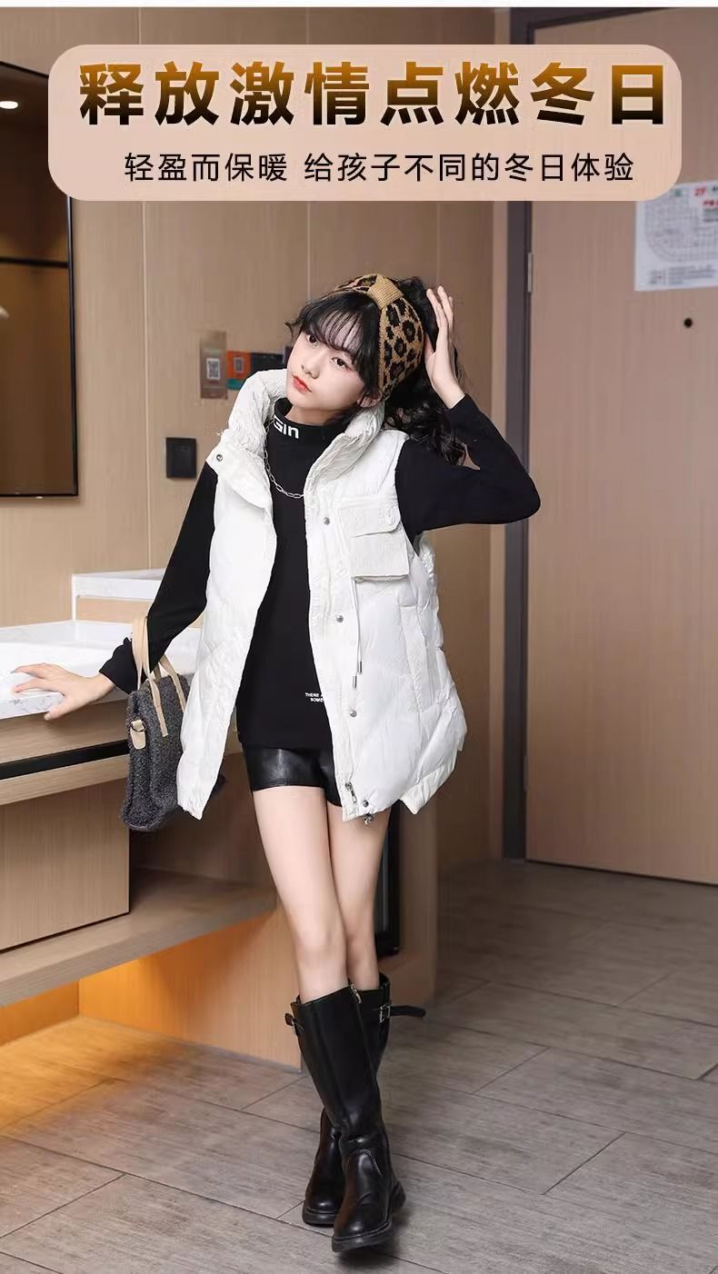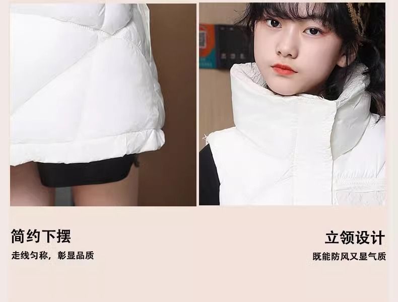 2023 가을과 겨울 소녀 다운 면 조끼 재킷 여자 중간 및 큰 아이 서양 스타일 밝은 얼굴 빨 유행 조끼스토어 가기